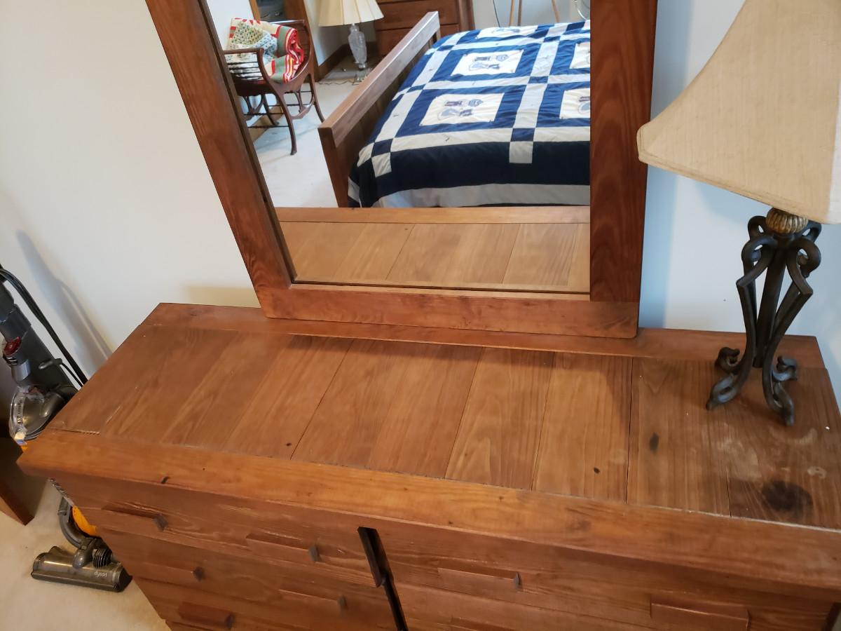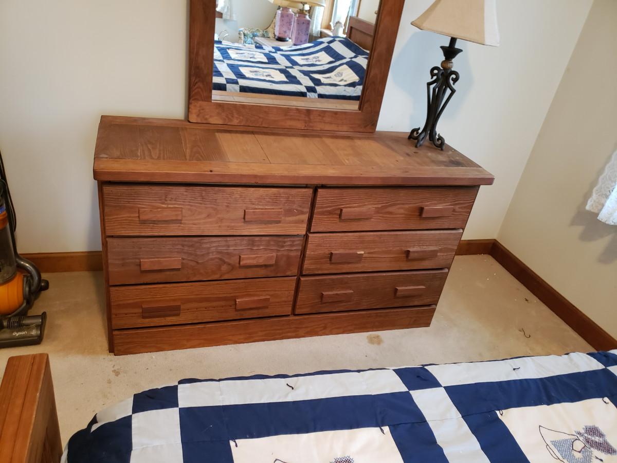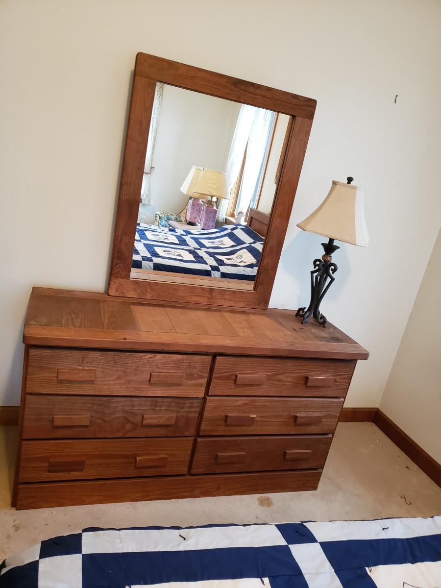 Mission style dresser matches the other two Mission style pieces listed prior to this one. Measures 56x20x31 and the mirror is 32x40.