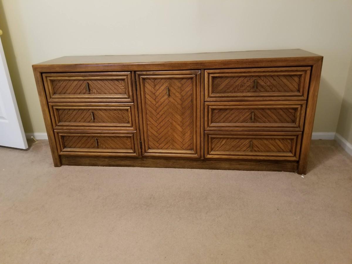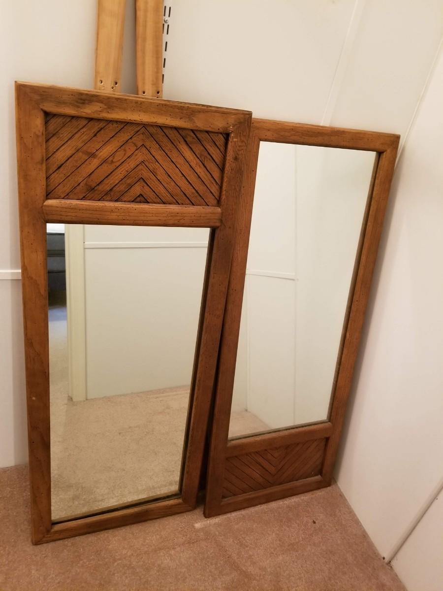 9 drawer dresser = 70"x 18"x 30" **top has minor blemishes, mirrors measure 19"x 48" each matches lot # 22