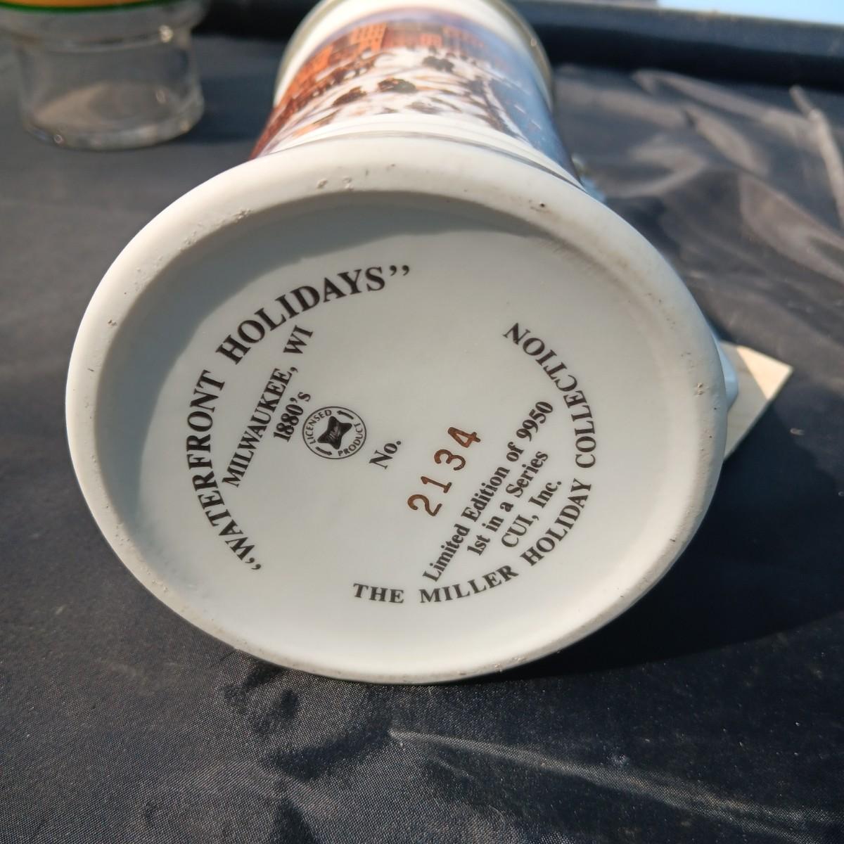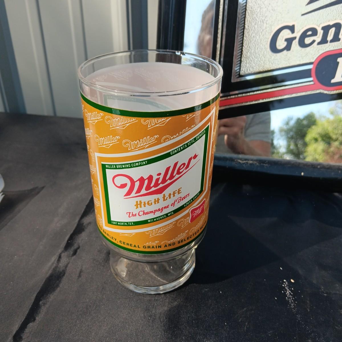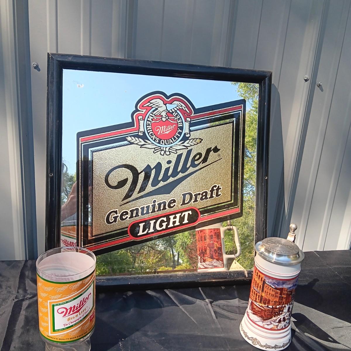 MIRRORED MILLER SIGN, LARGE GLASS AND STEIN