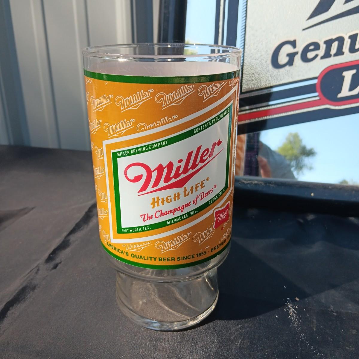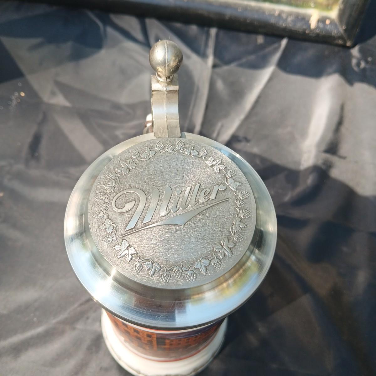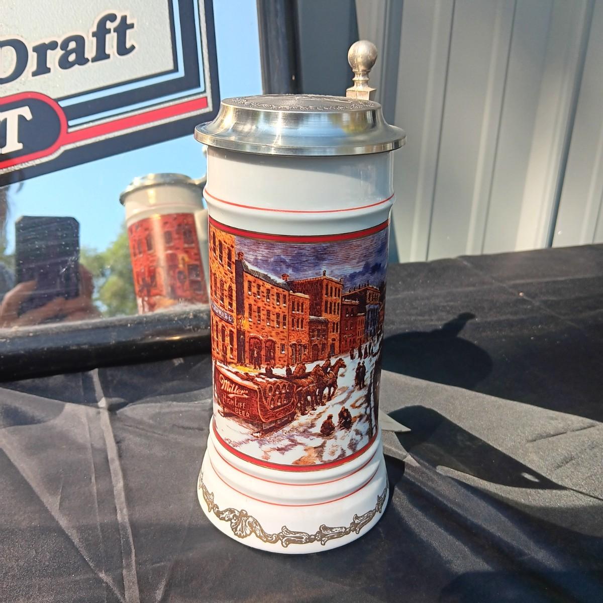 MIRRORED MILLER SIGN, LARGE GLASS AND STEIN