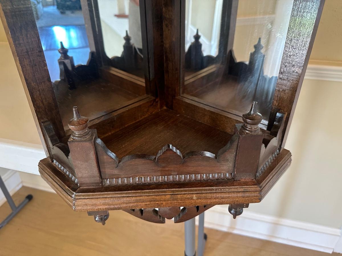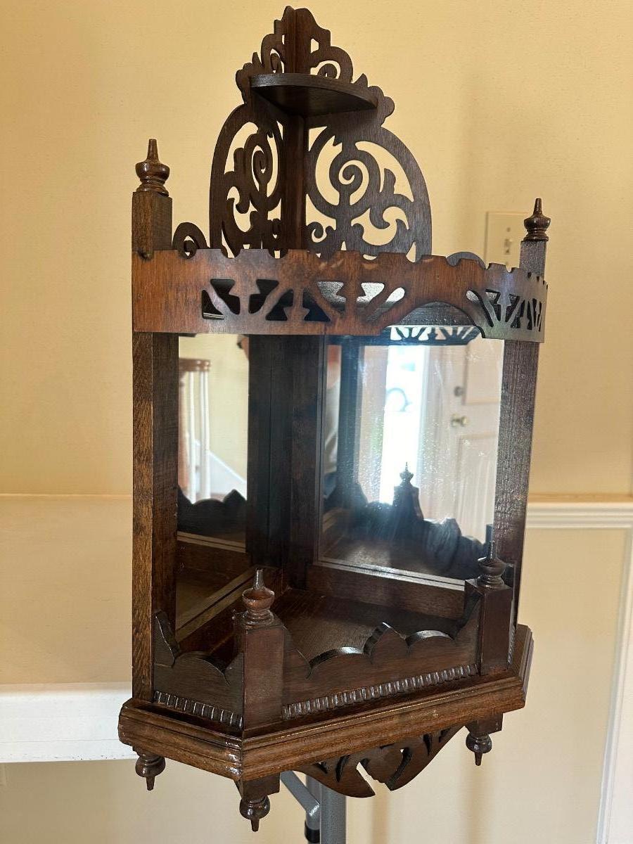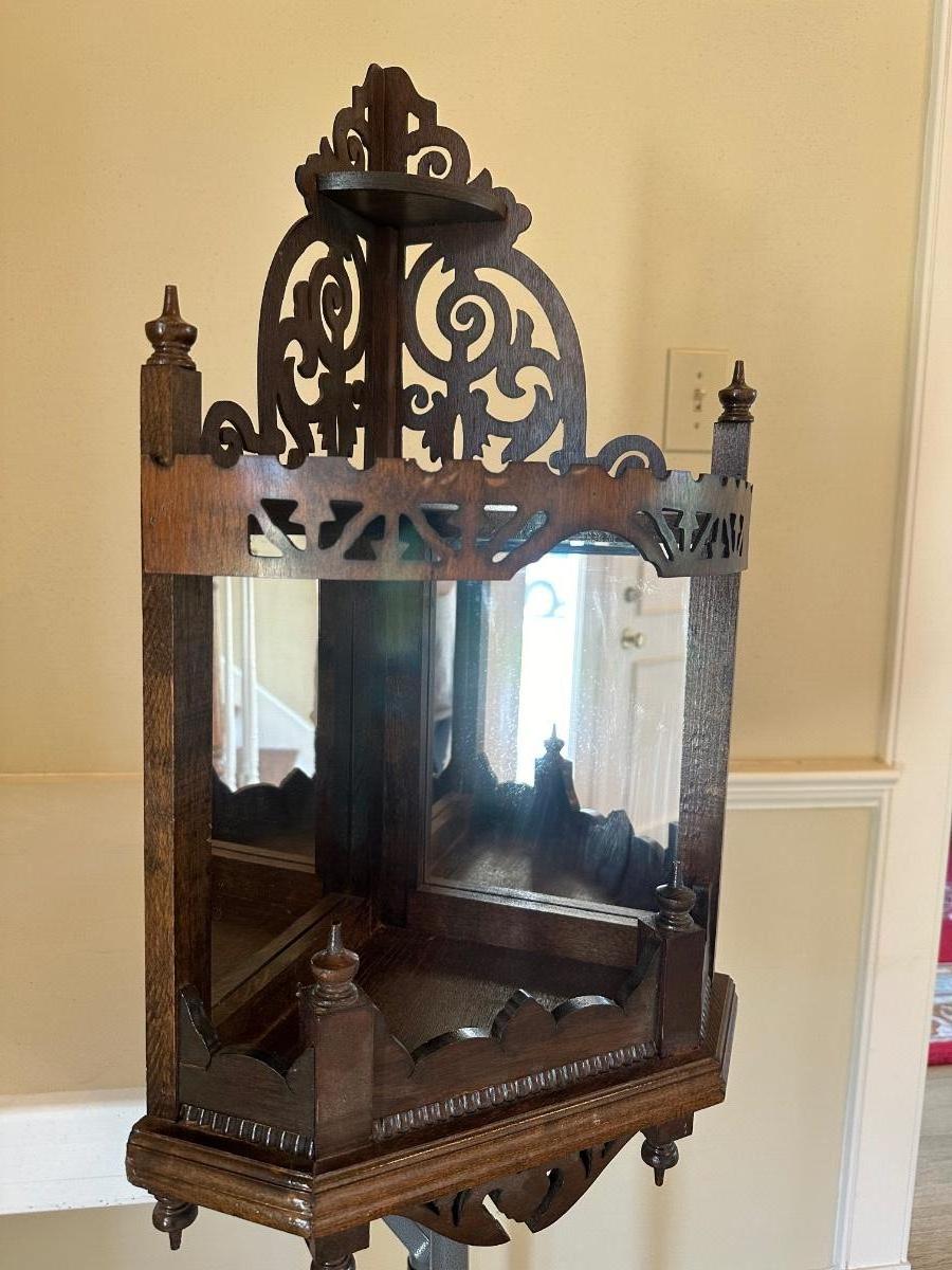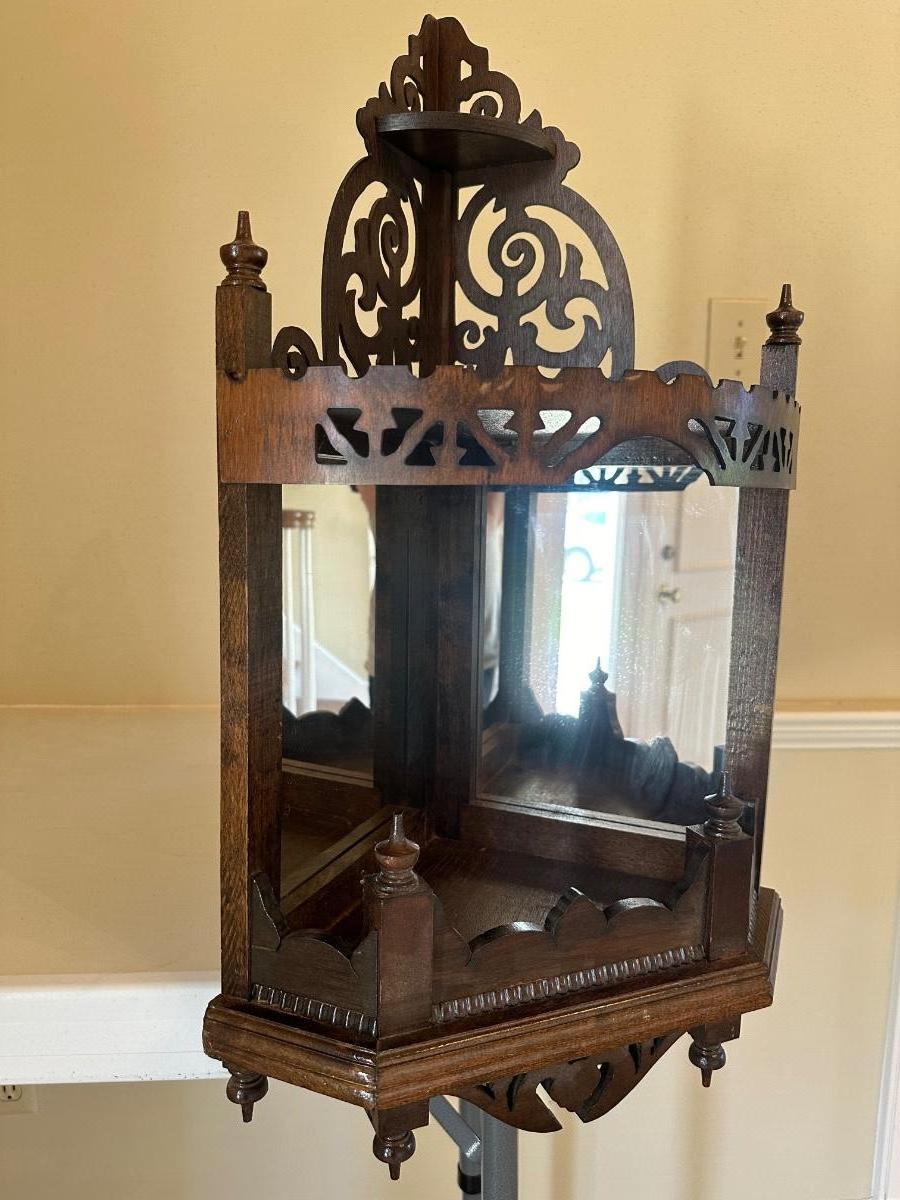 Mirrored Reticulated Walnut Wooden Hanging Corner Shelf