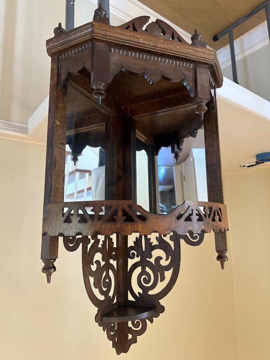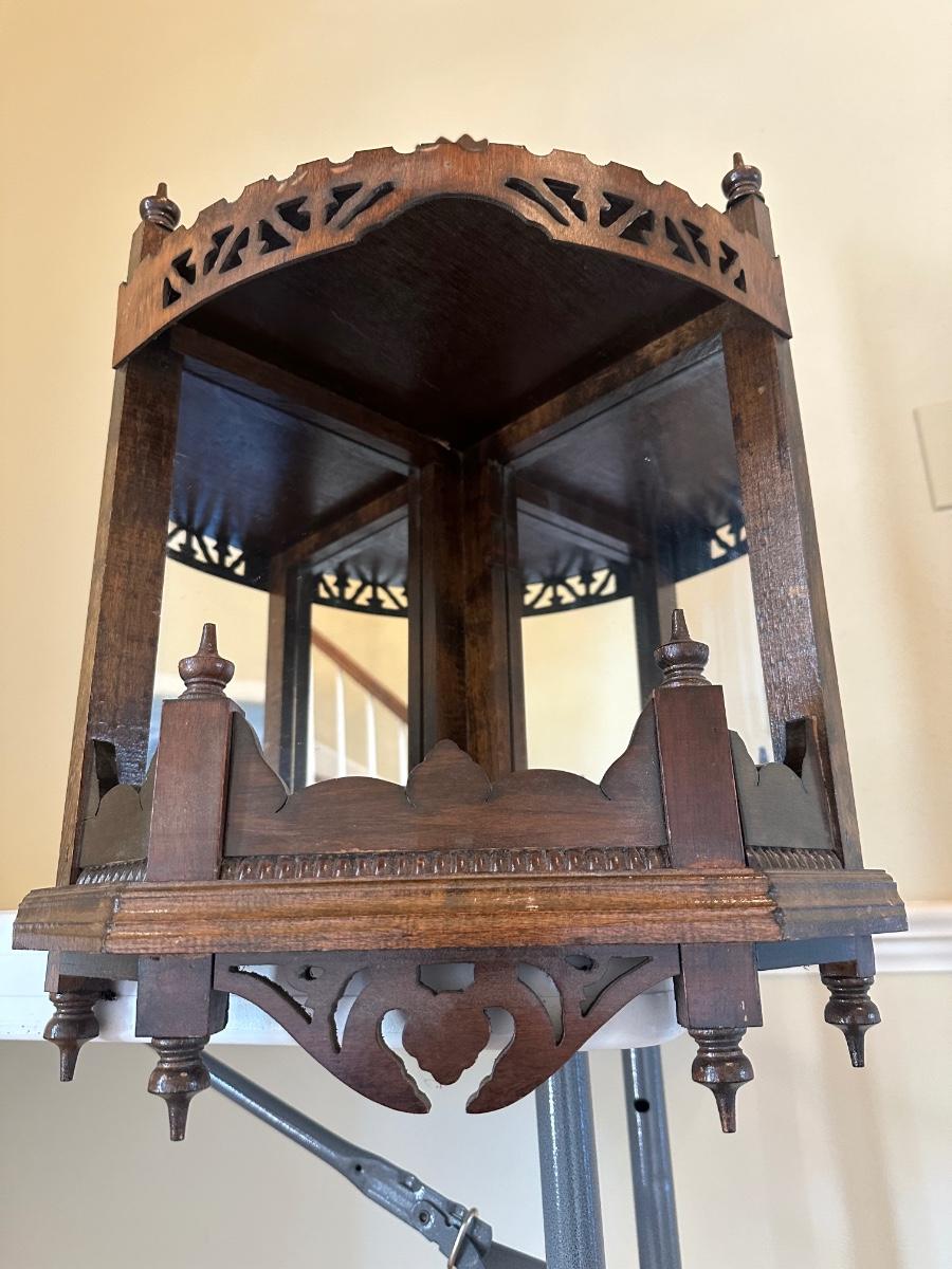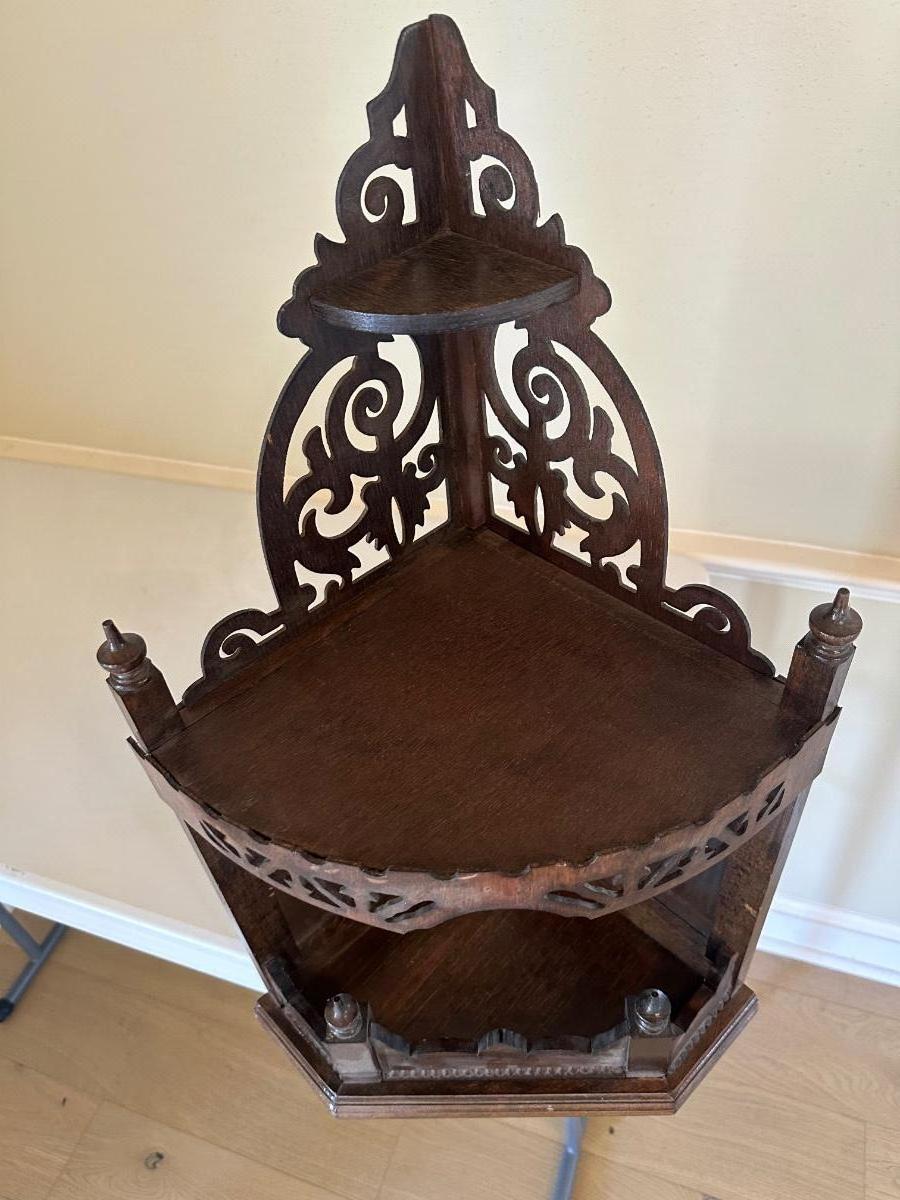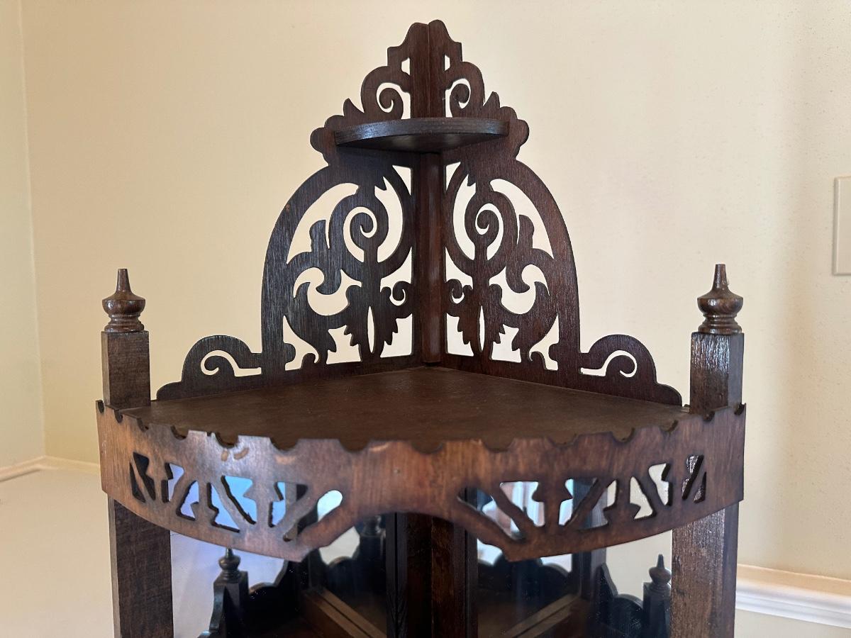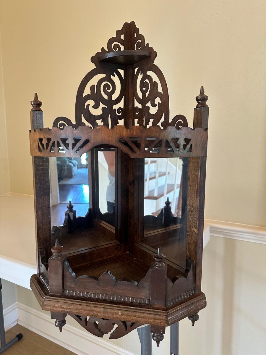Mirrored Reticulated Walnut Wooden Hanging Corner Shelf