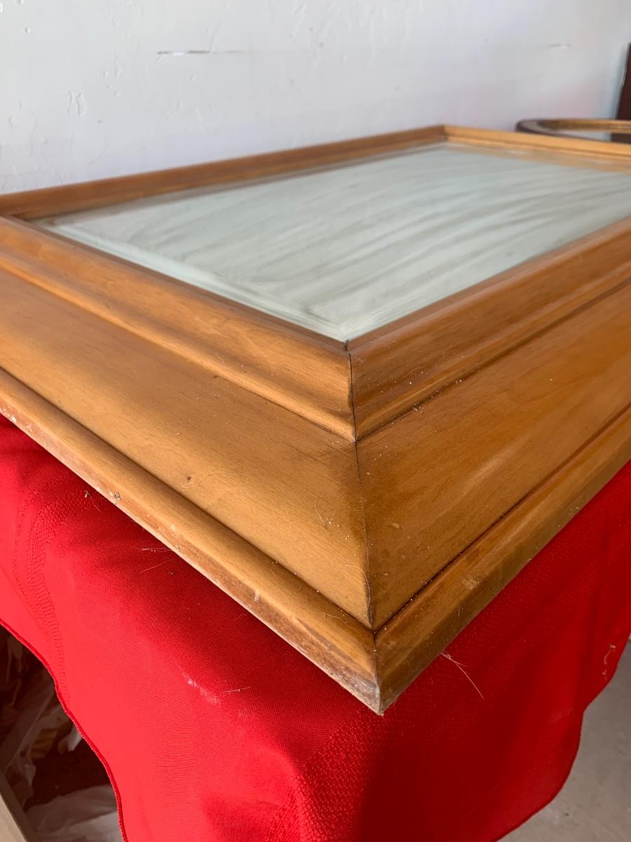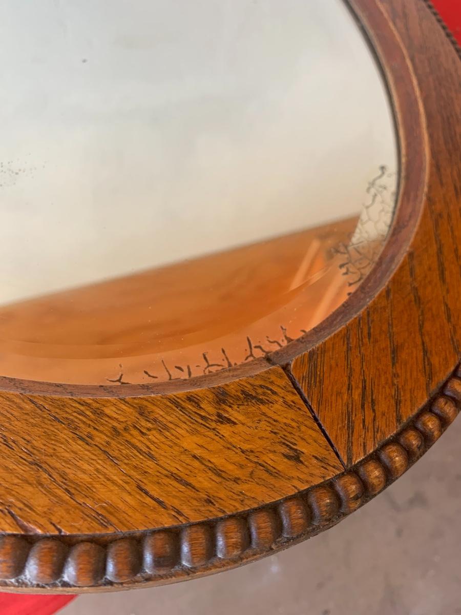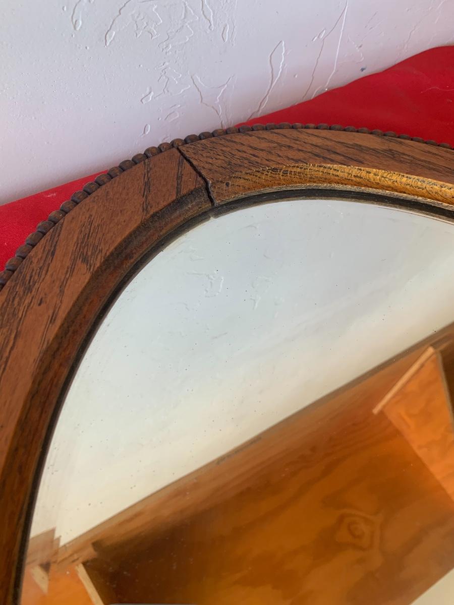 One antique oval wood frame mirror with wooden edging, (31 inches X 20 inches), One rectangular pine mirror with beveled edge (42 inches X 30 inches)