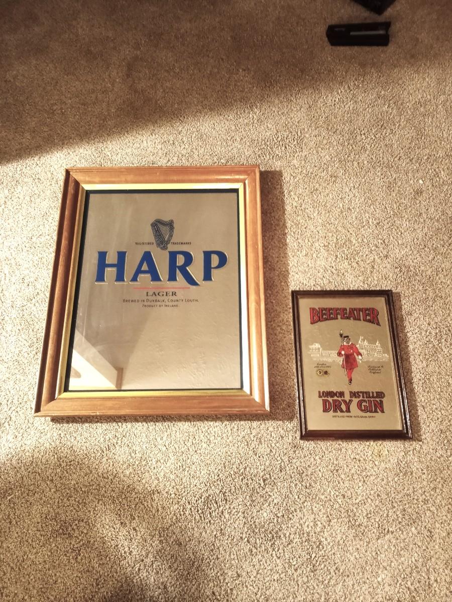 FRAMED HARP LAGUER AND BEEFEATER DRY GIN MIRRORS