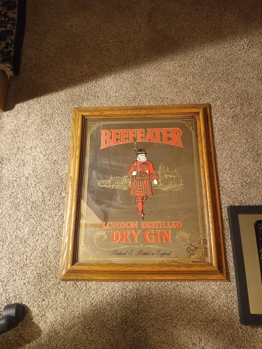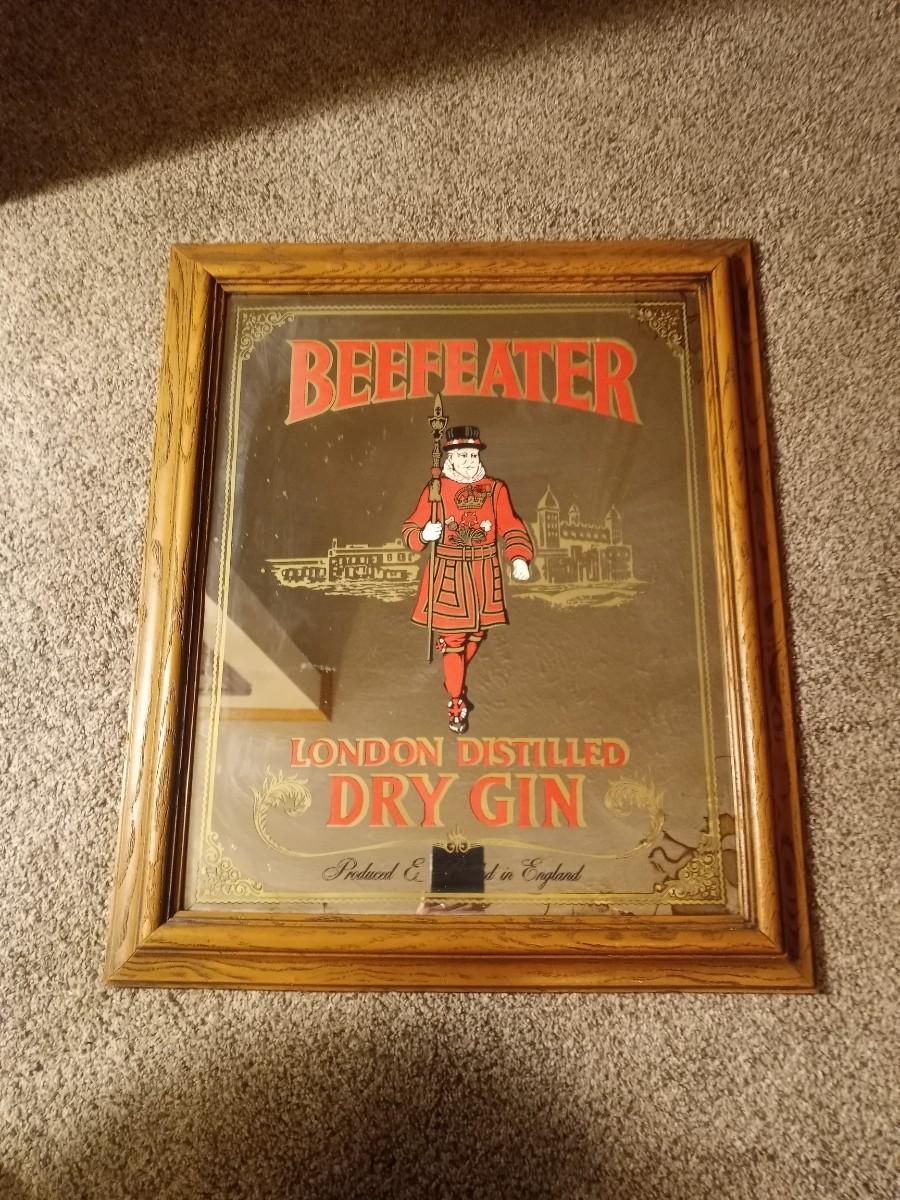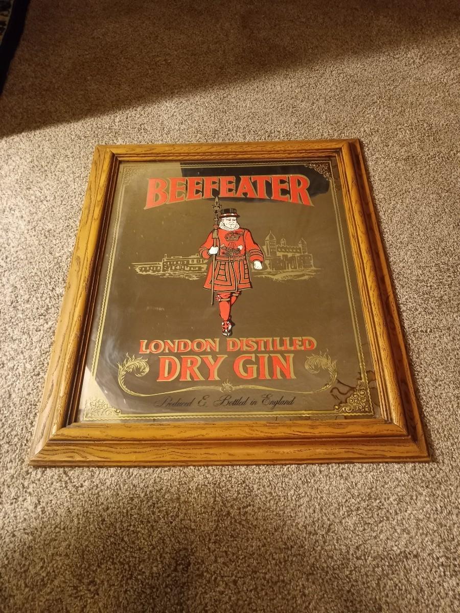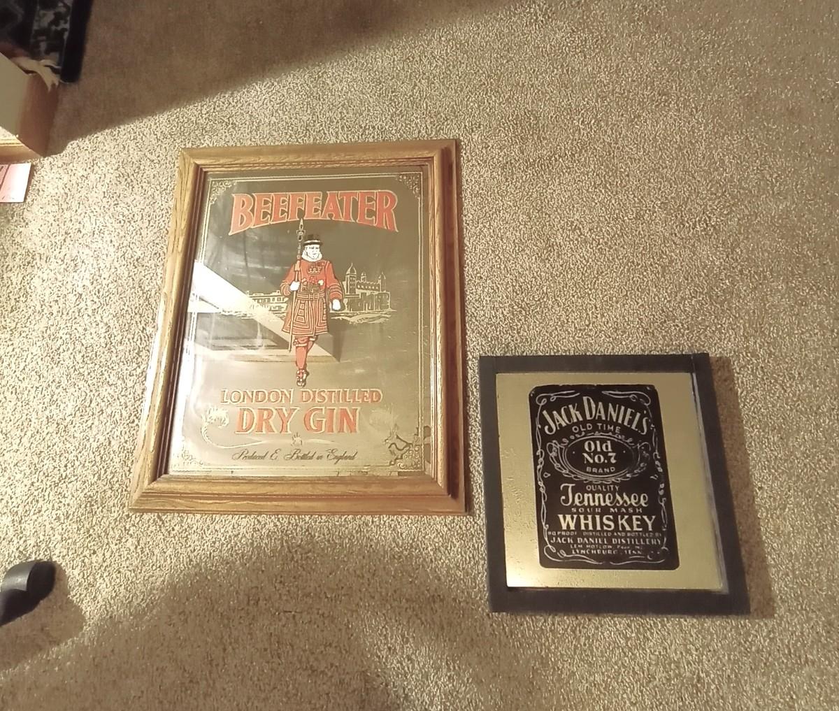 LARGE FRAMED BEEFEATER DRY GIN AND JACK DANIELS MIRRORS