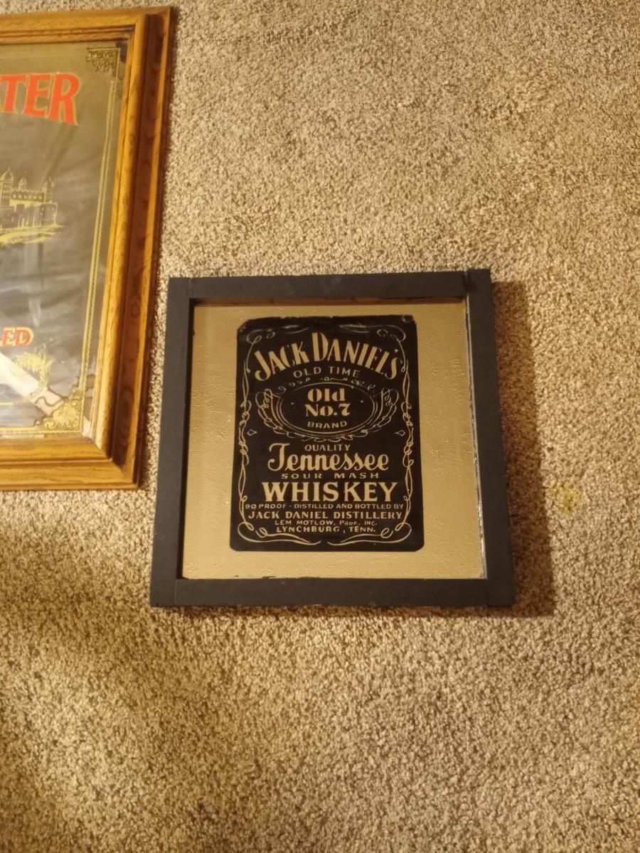 LARGE FRAMED BEEFEATER DRY GIN 19X23 AND JACK DANIELS 13" SQUARE MIRRORS
