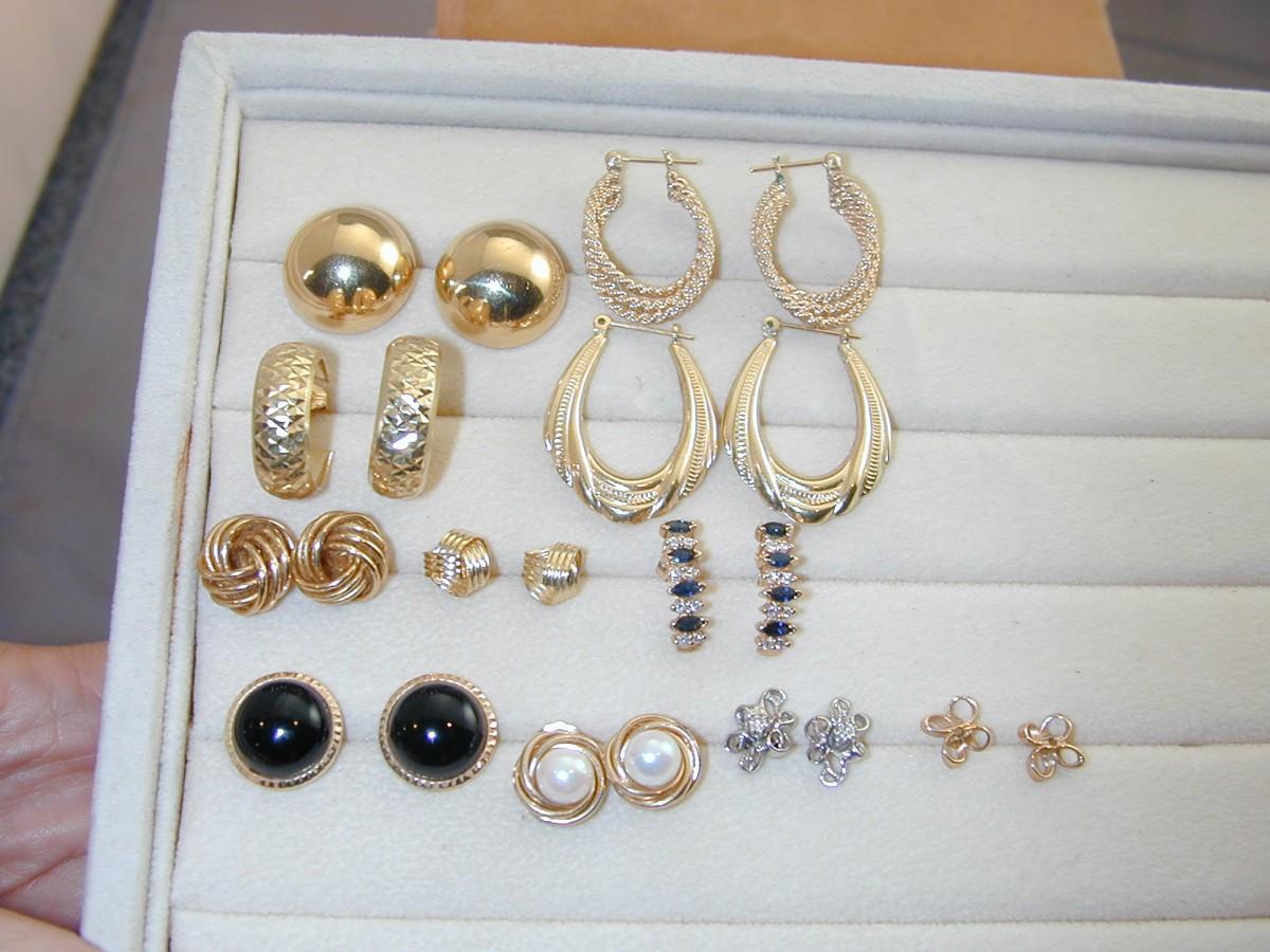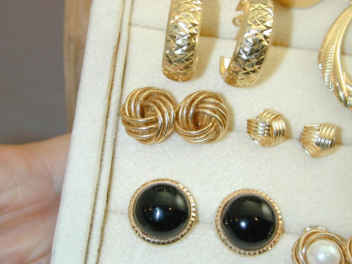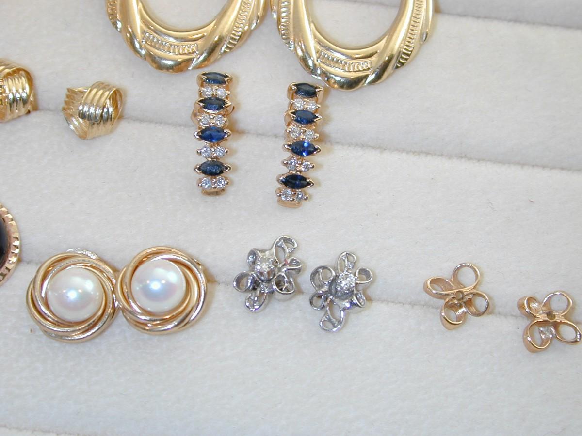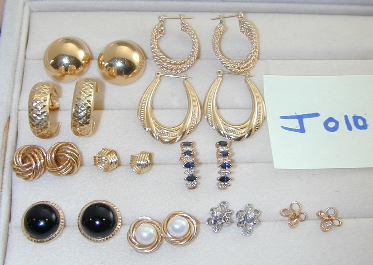 Misc 14k Earrings Lot - 10 Pairs Earrings 2 Pair Earring Jackets 26.9 Grams - J010