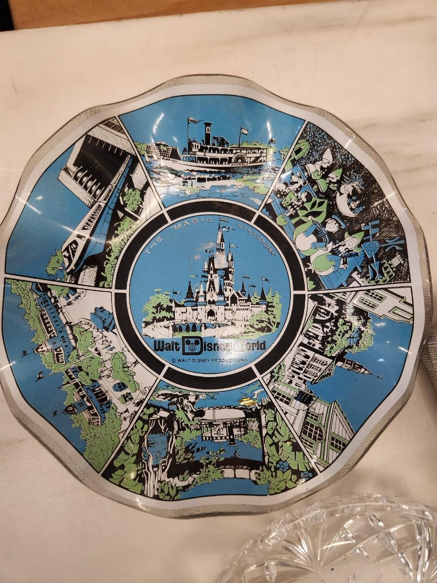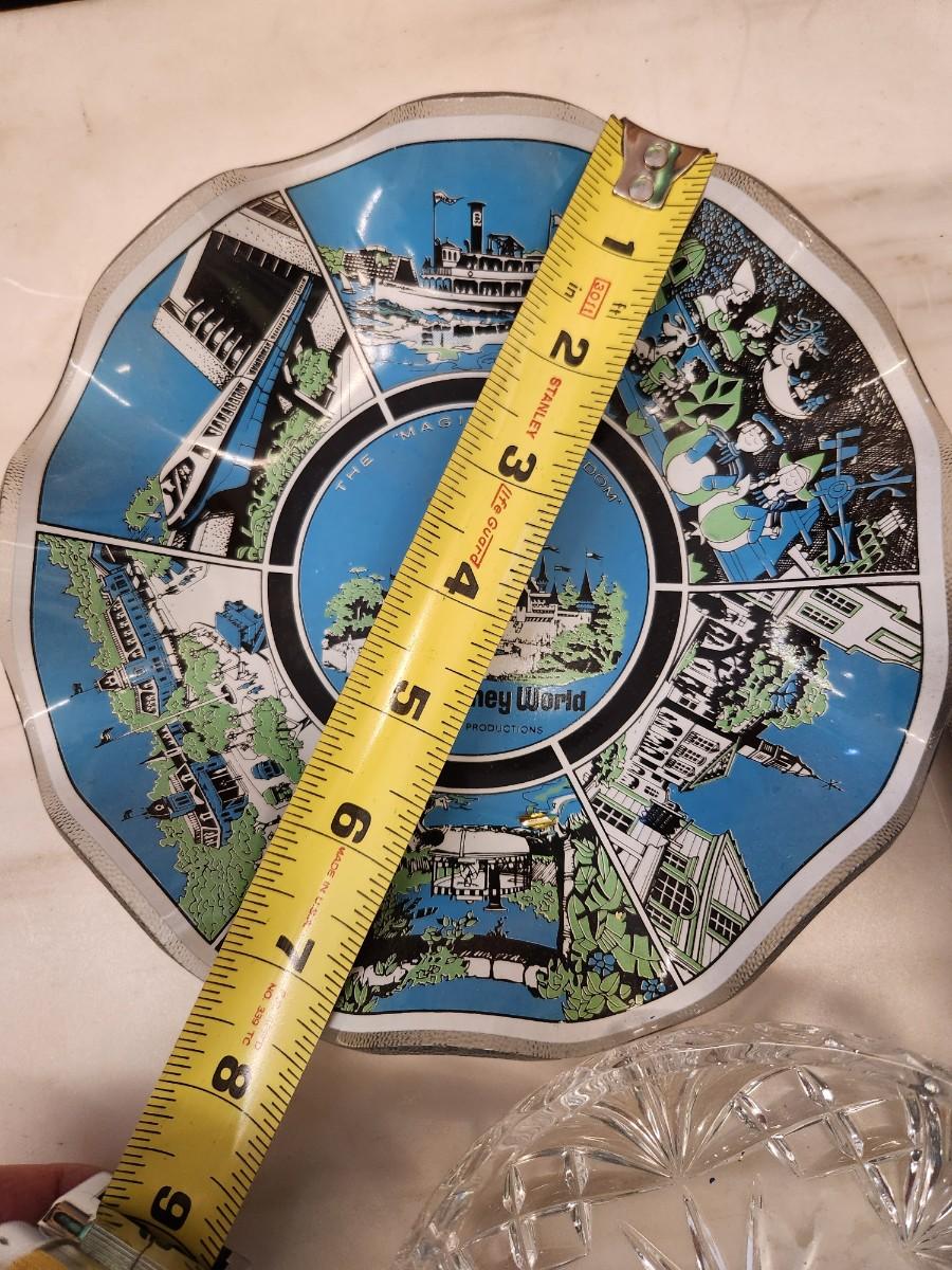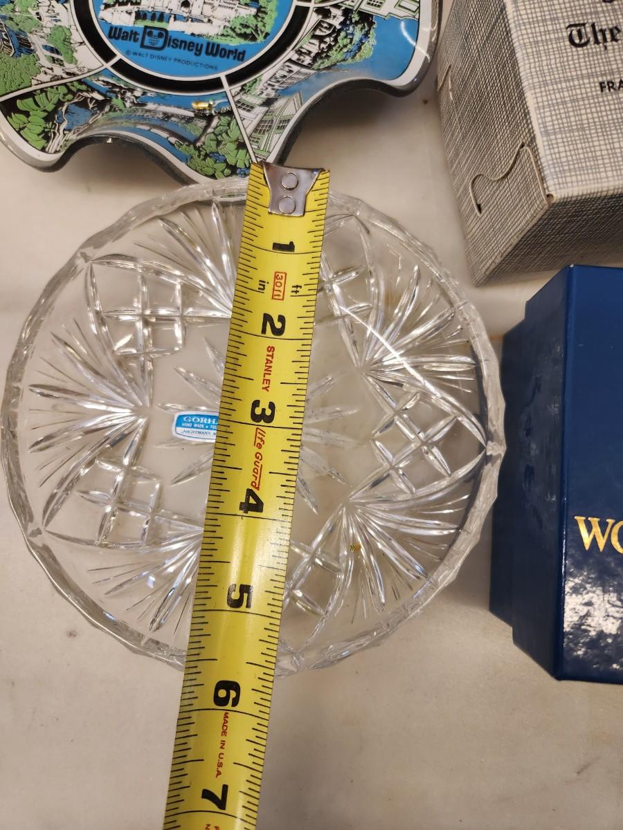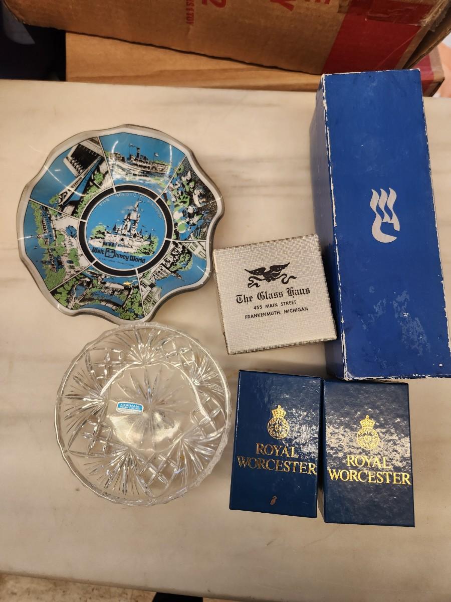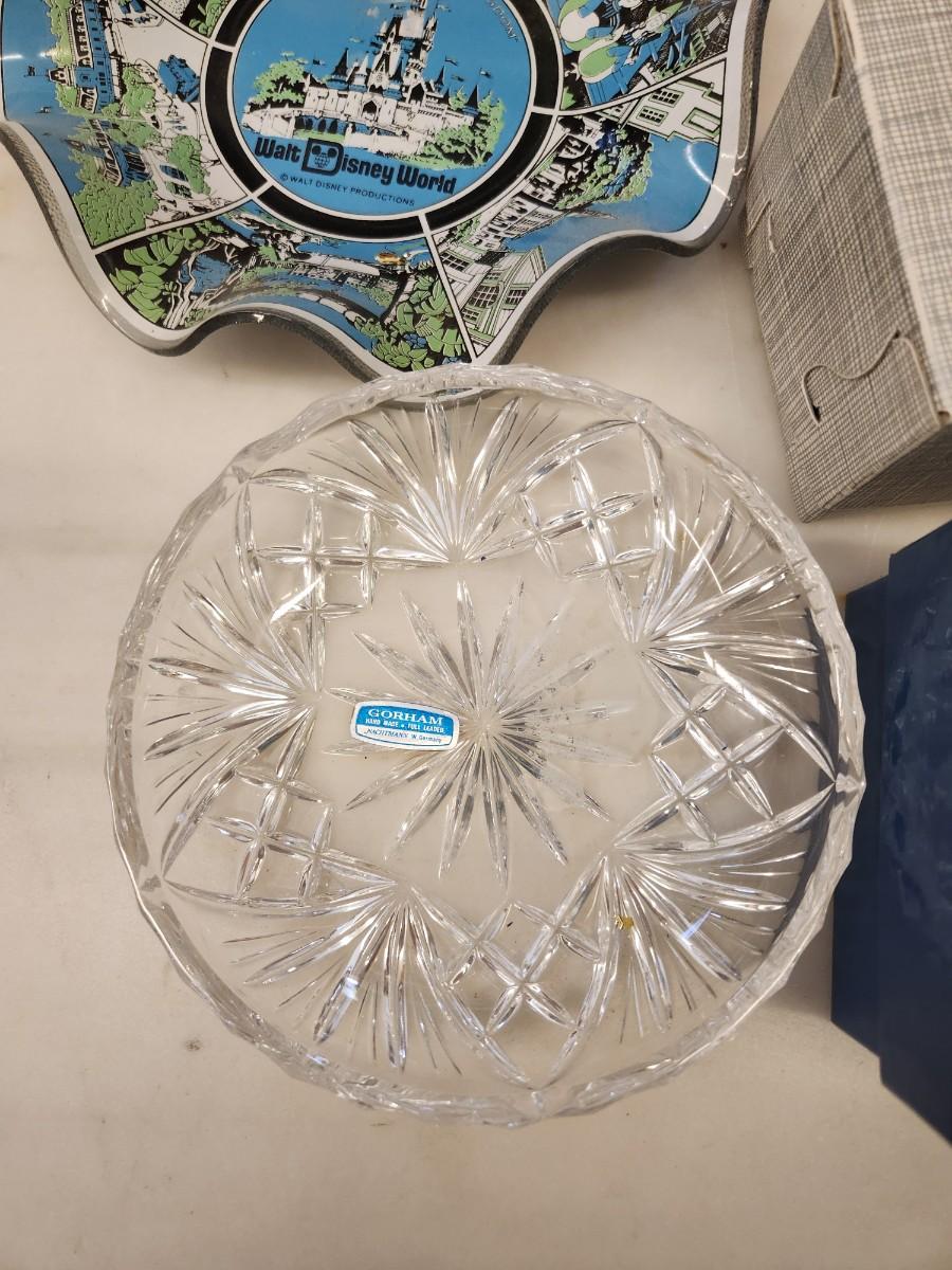 Misc lot. Princess cruise line flute, vintage Disney dish, Gorham dish, a couple egg coddlers and a ring dish from Frankenmuth