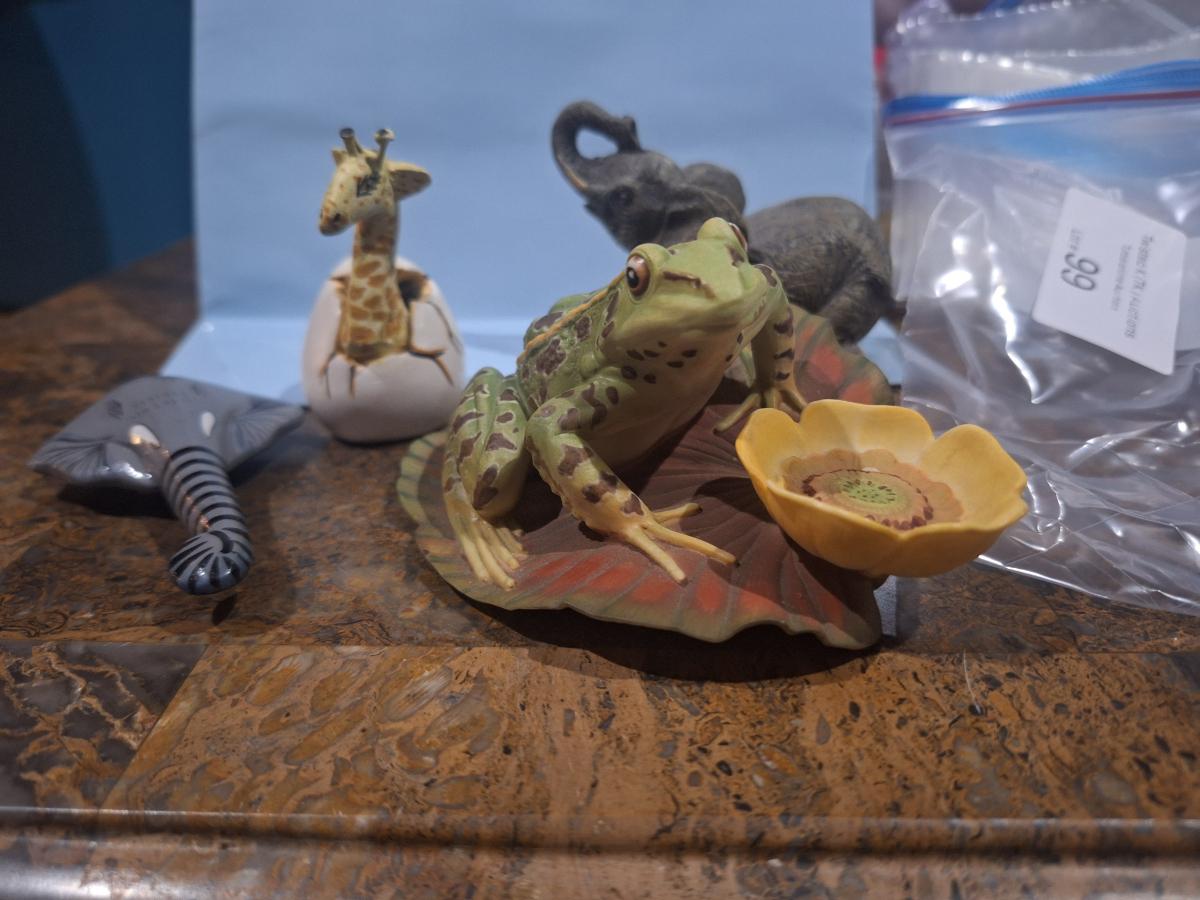 misc animal trinkets, the frog on lily pad is numbered and signed on bottom.