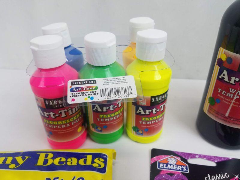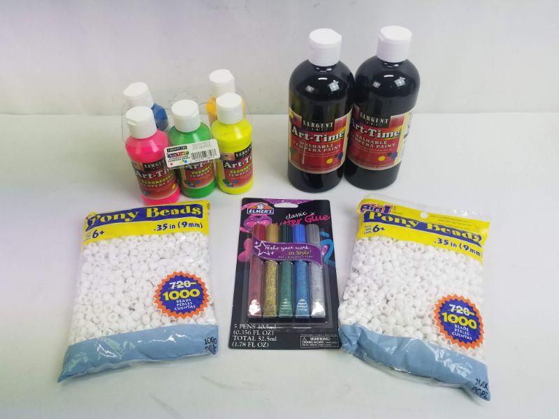 Misc Art Supplies: Tempera Paint, Pony Beads, & Glitter Glue - New