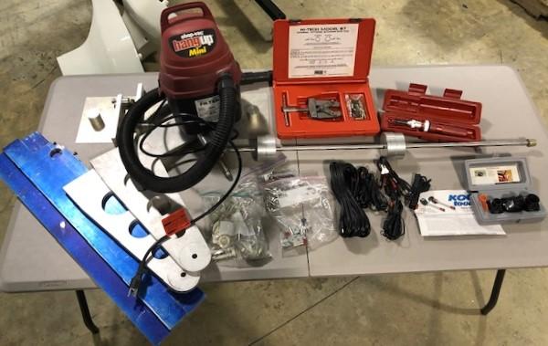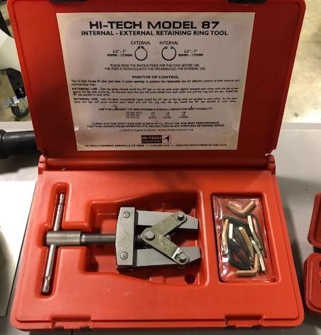 Hi-Tech model 87 retaining ring tool, proto torque screwdriver, hose fittings/misc. steel & aluminum, mini shop vac. All items in good to excellent condition