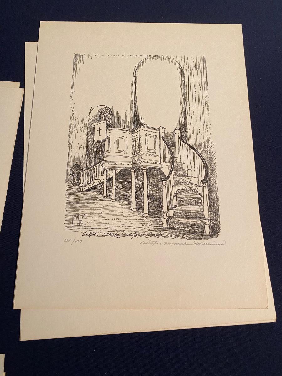 Misc Bethesda Presbyterian Church Unframed Prints, All Signed Betty Lou McMan Williams