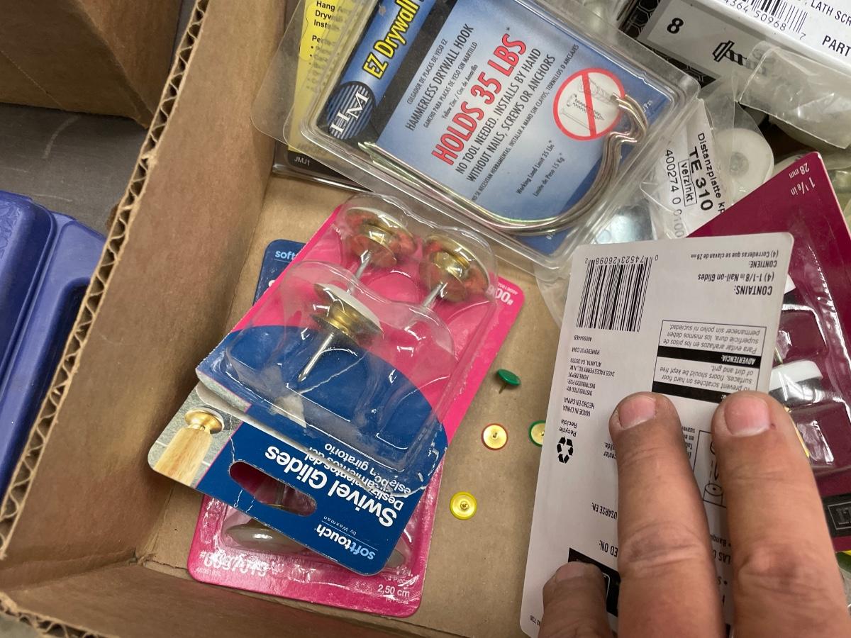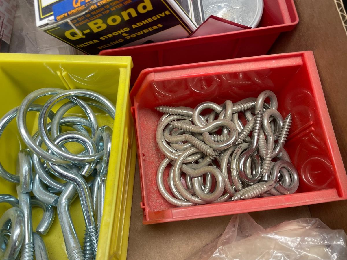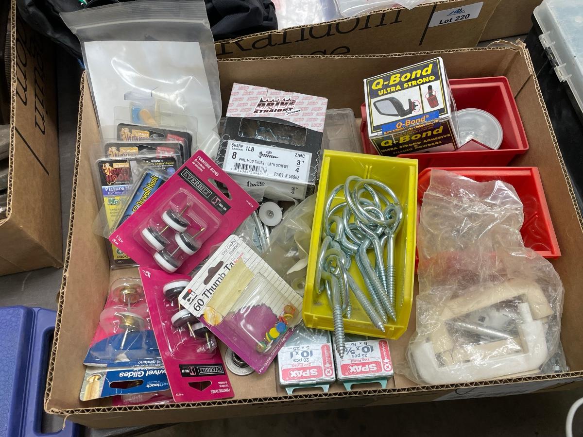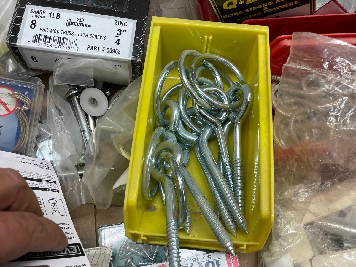 Misc. Box of Hooks/Bolts/screws/furniture feet
