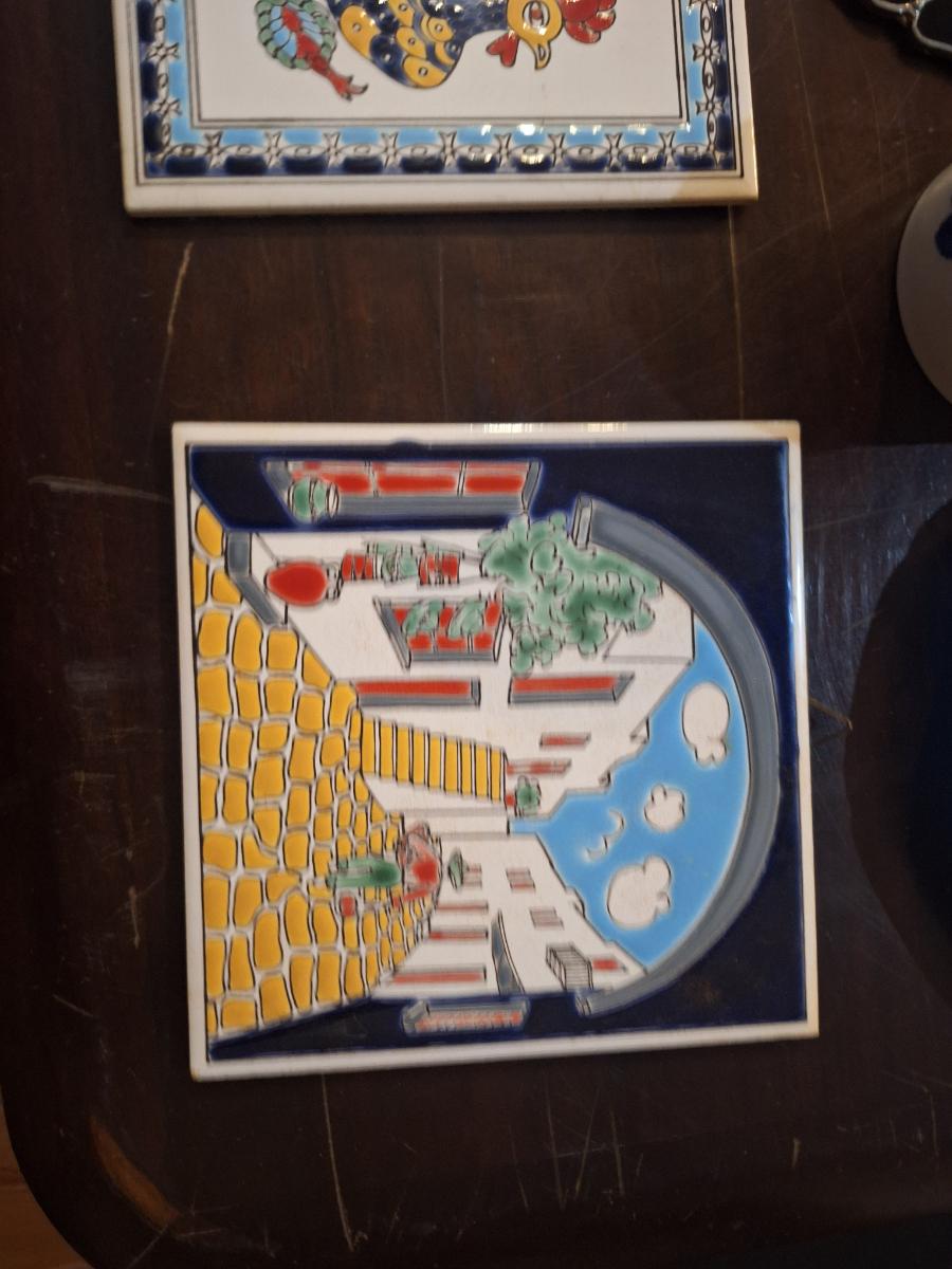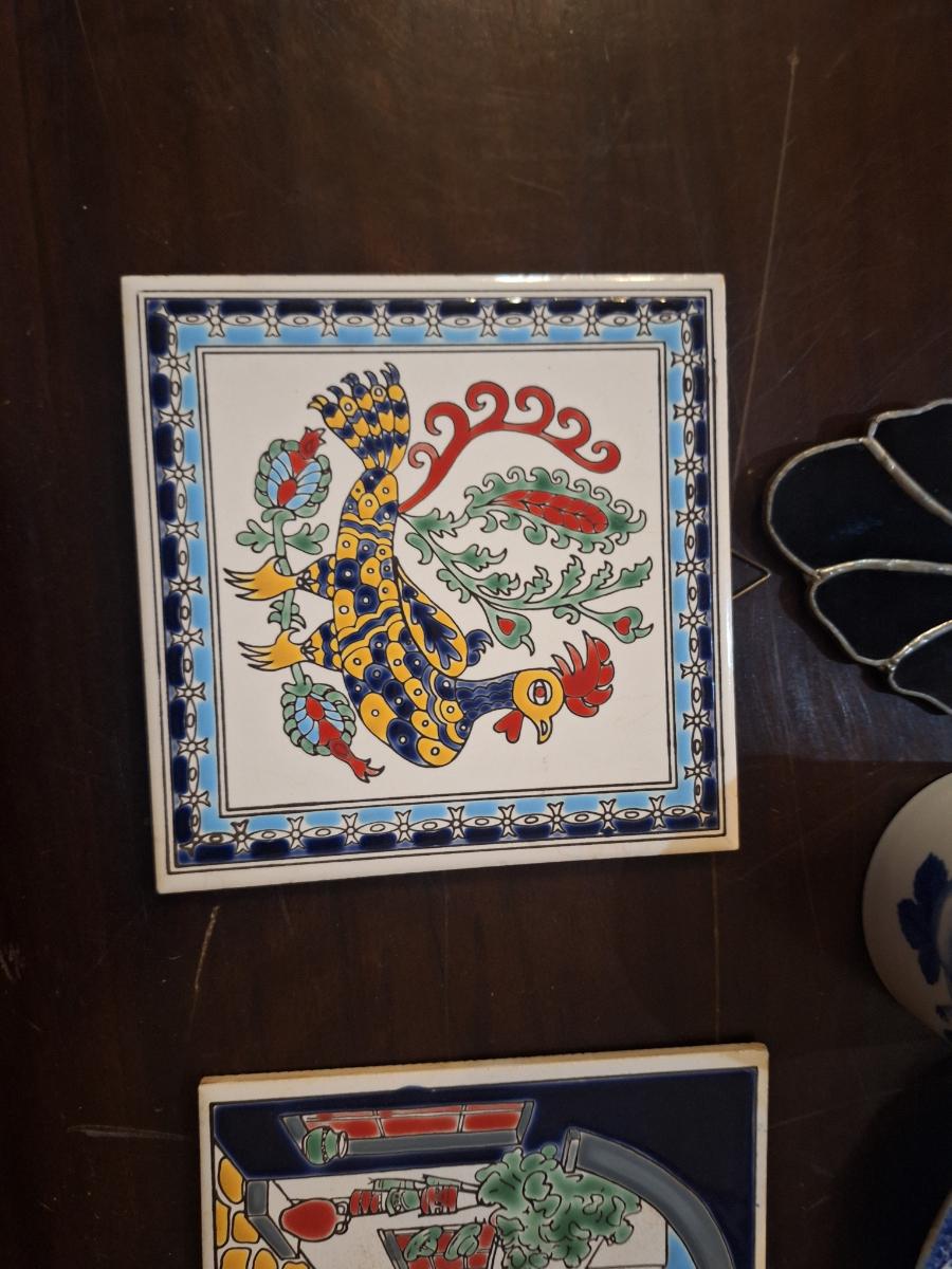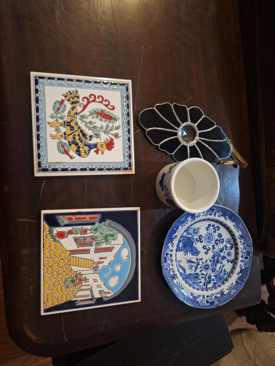 misc bundle of ceramic tiles, dishes and other