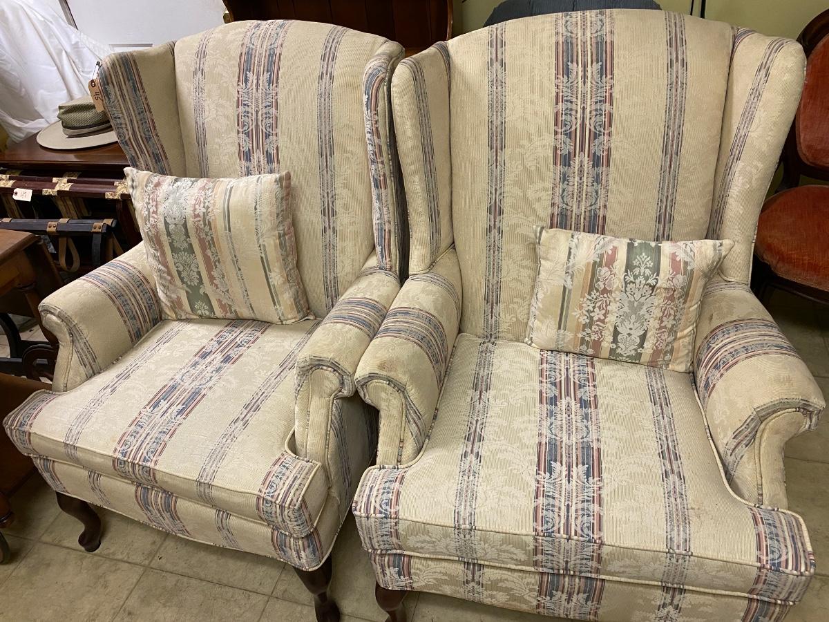 Misc Chair Lot Includes Pr of Wing Backs, and Blue Recliner As Pictured