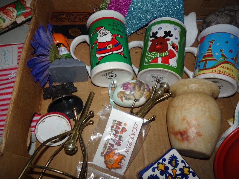 Misc. Christmas Decorations, Dishes, Trinket Box Lot