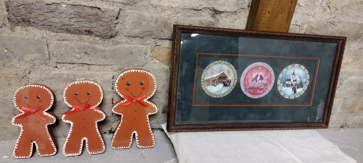 Set of 3 Gingerbread Candle holders and framed Christmas Print