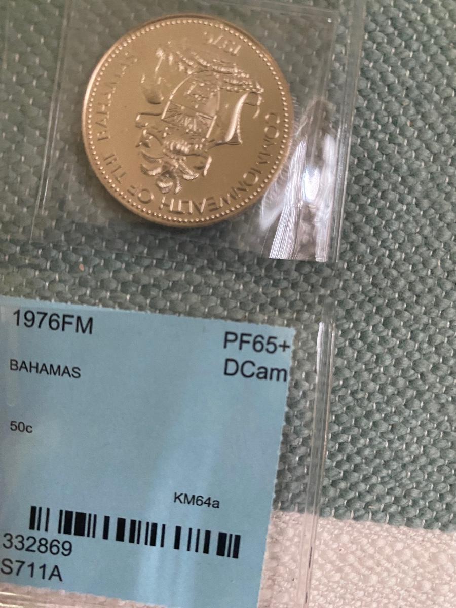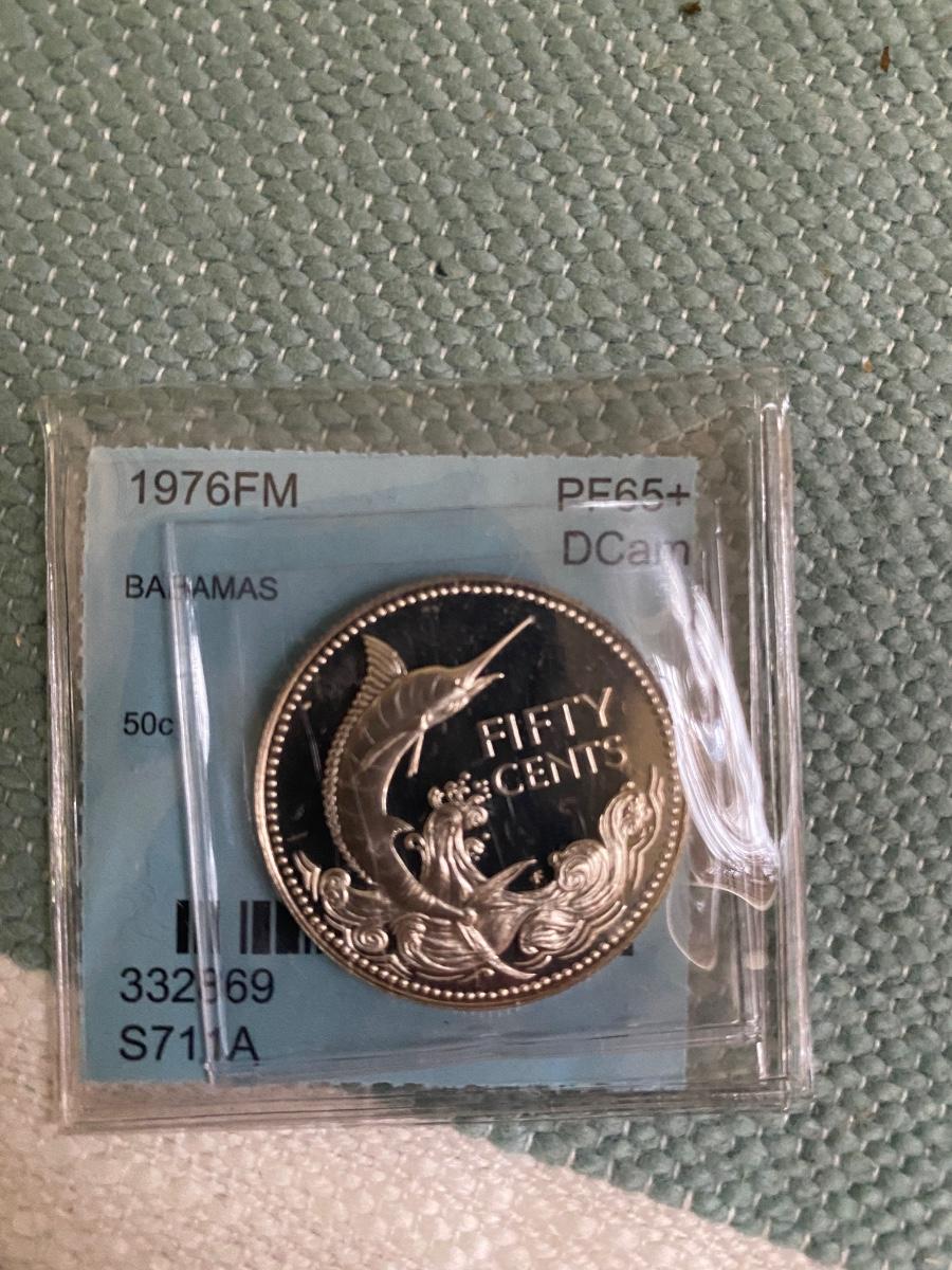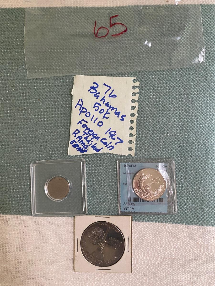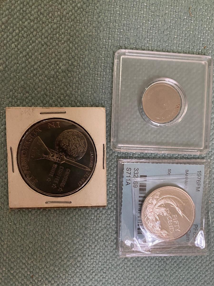 1976 Bahamas 50 Cent Coin, Apollo 1967 Coin, & Thailand Rama 5 Cent As Pictured