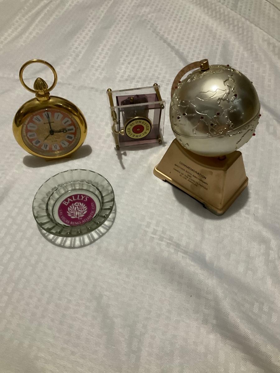 Misc collectibles; ashtray, globe, bud & watch