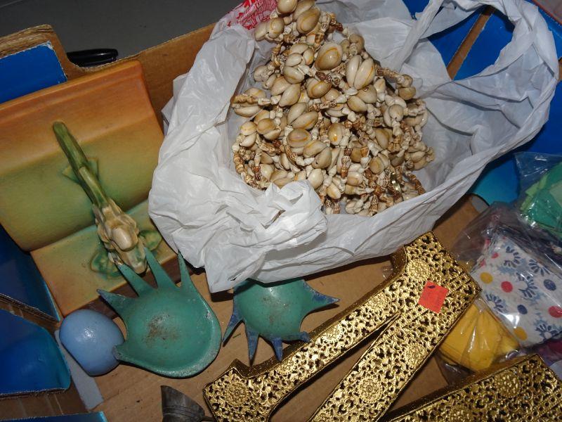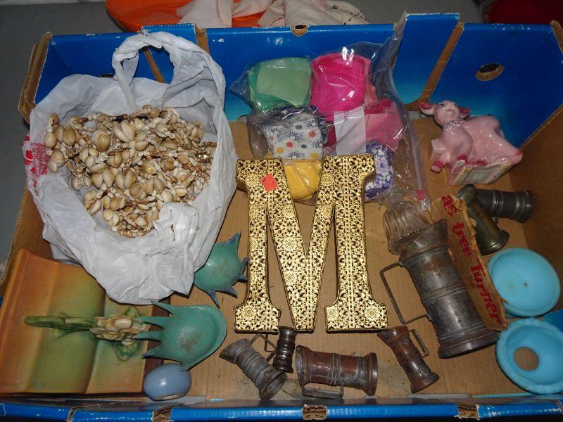 Misc Collectibles Lot, Tankards, Letter M Seashell Garland Necklaces, Trivets, Quilt Squares and more