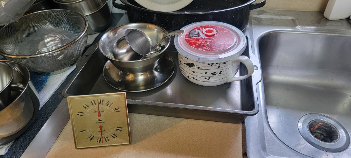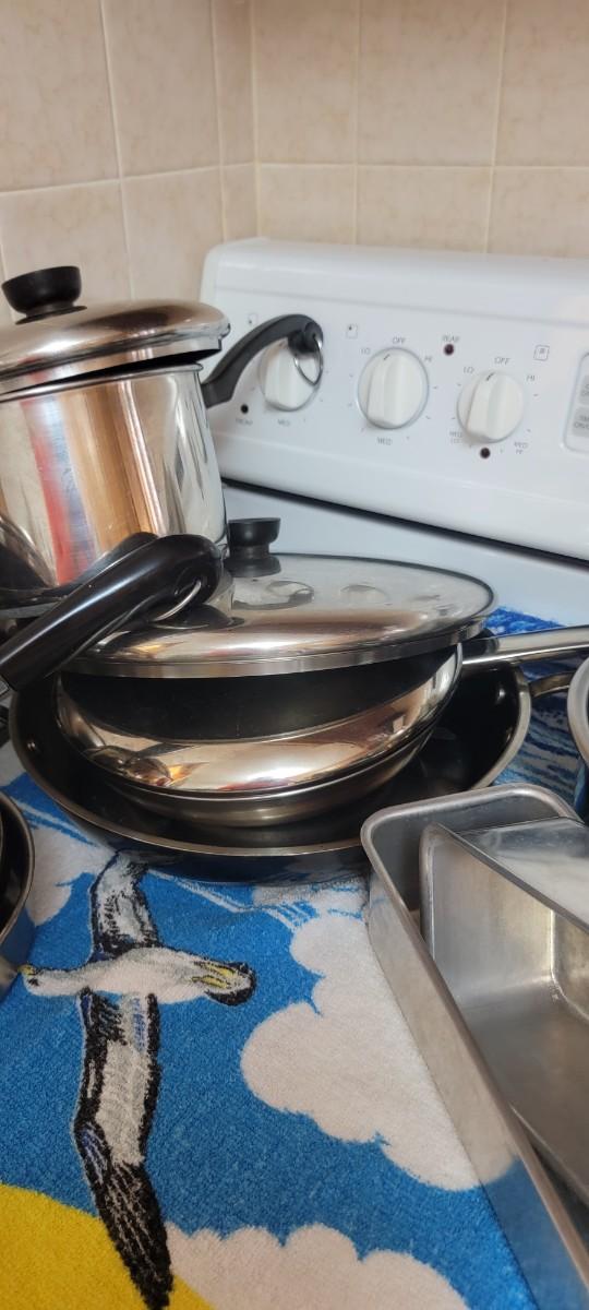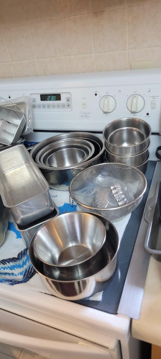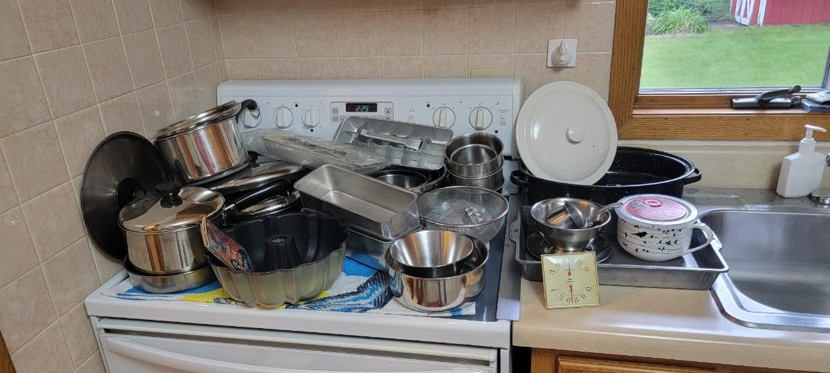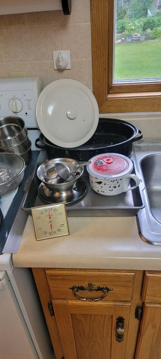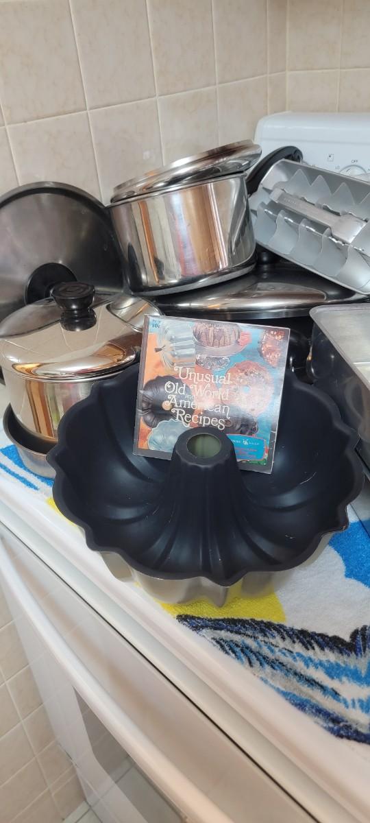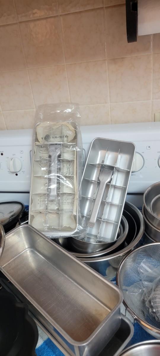 Miscellaneous cookware, bundt pan, ice cube trays, roaster, and more.