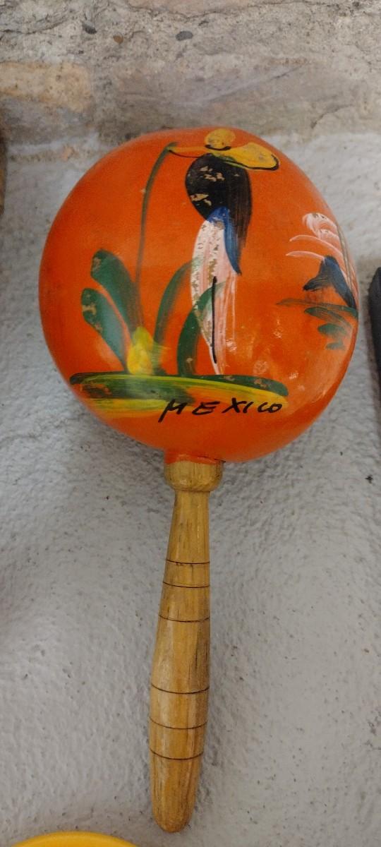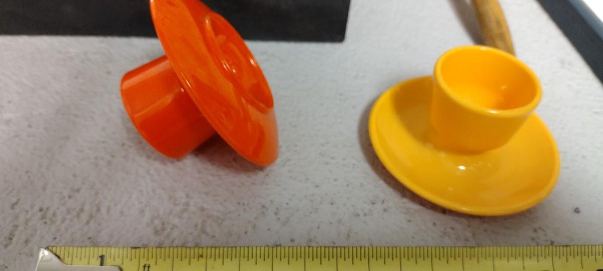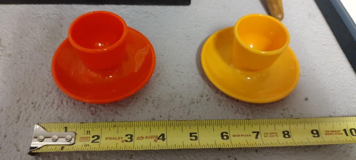 Pair of MCM plastic Egg Cups and a vintage Mexico Maraca