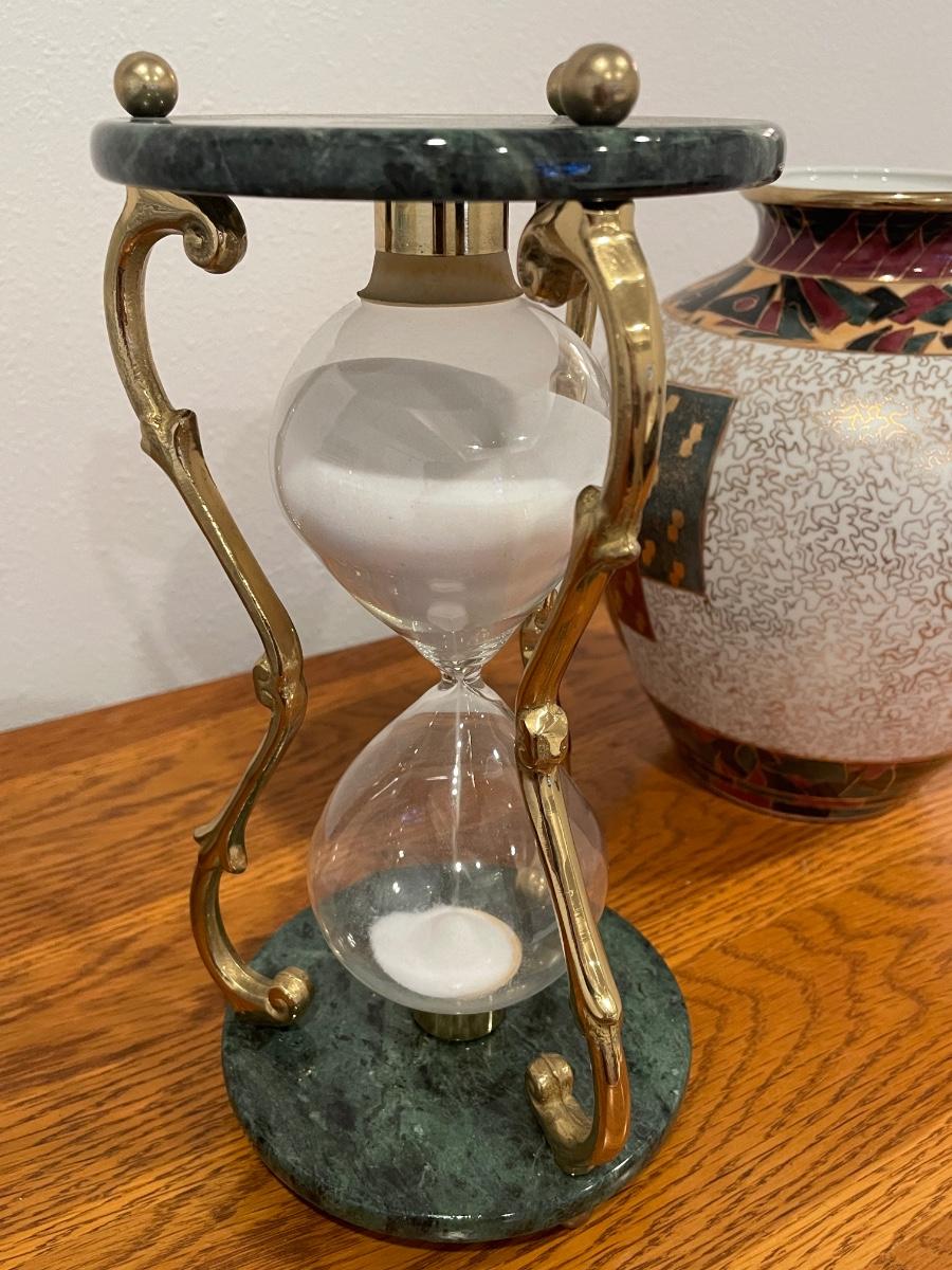 60 minute sand timer Measuring 9.5” tall with marble end caps.