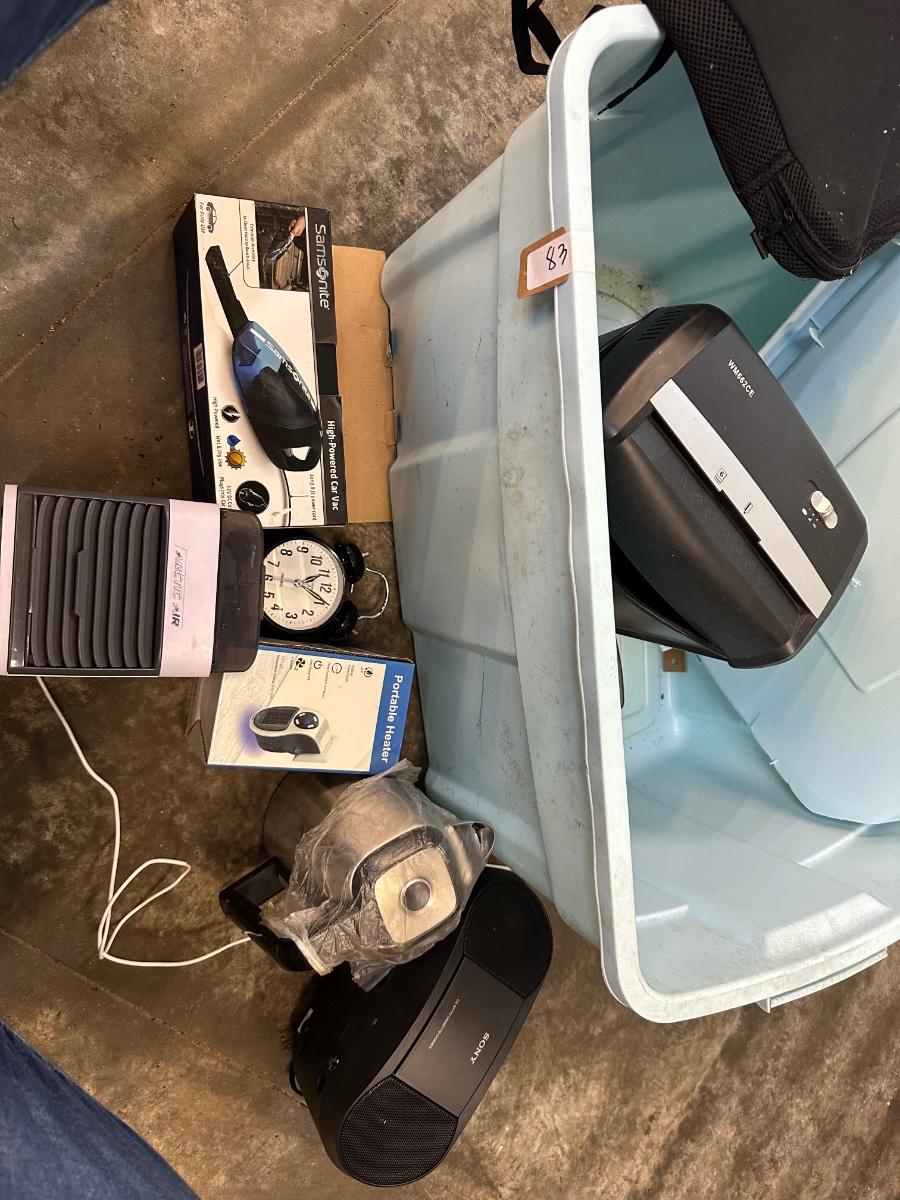 MISC ELECTRONIC LOT SHREDDER, ARTIC AIR FAN, CLOCKK, CAR VAC, COFFEE POT
