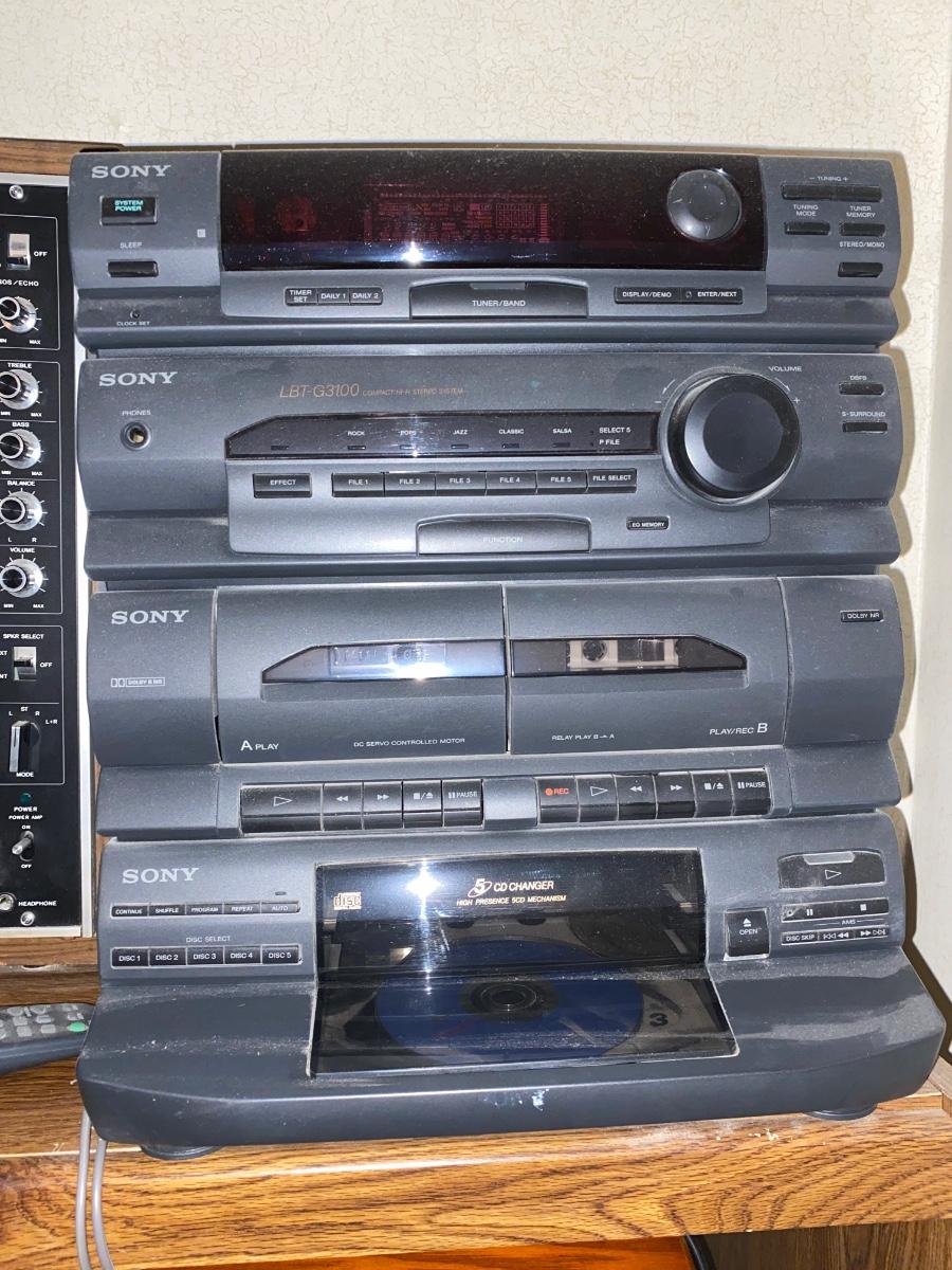 Misc Electronics, Music, Including Sony Bidirectional Recording TC-30 Device, Sony Stereo w/ Speakers, Crosley Turn Table with CD Player, Yamaha Natural Sound AV Reciever, TEAC Recorder, Garrarard Turn Table and More As Pictured