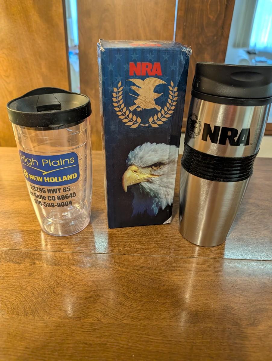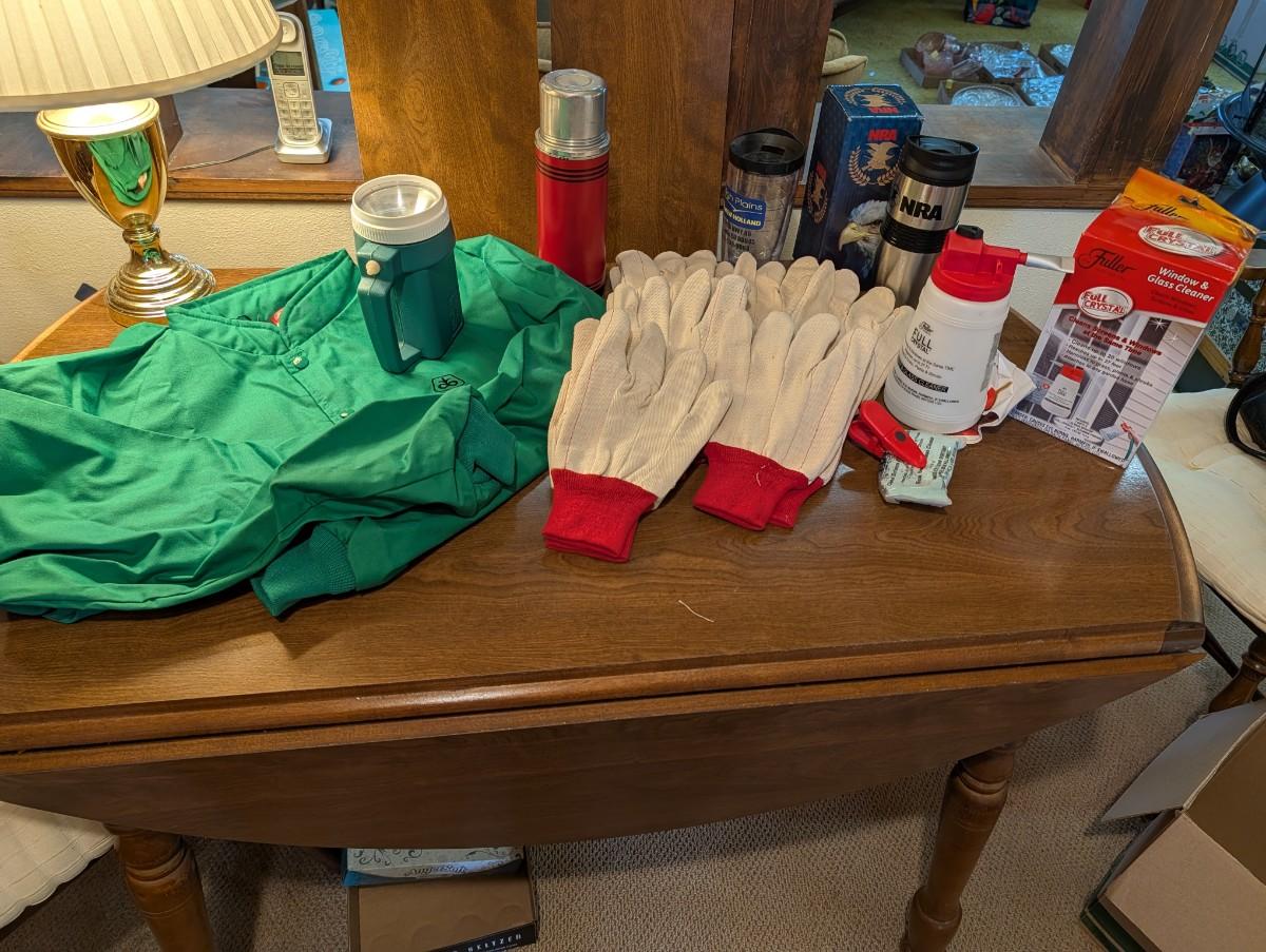 Work gloves icy Hot vintage thermos flashlight, NRA thermal cup, new Argo jacket size large.