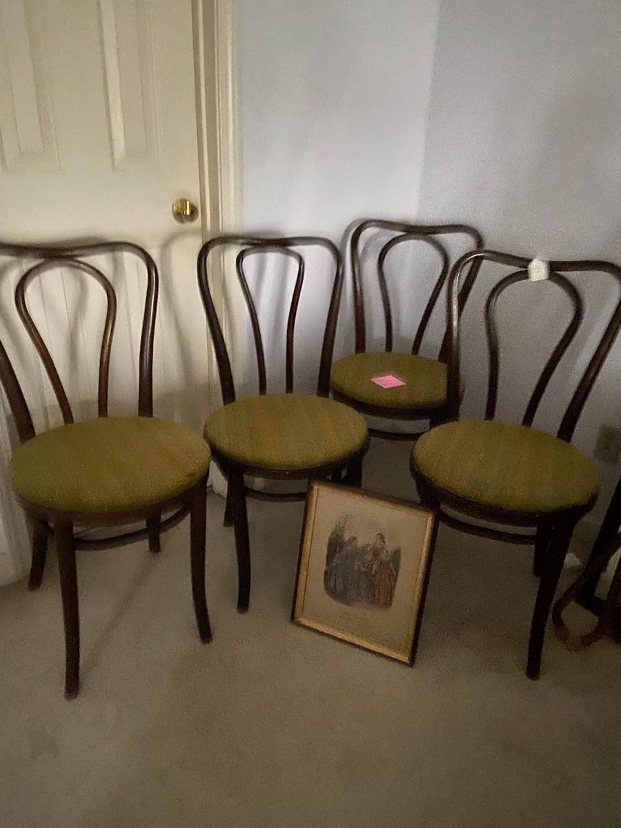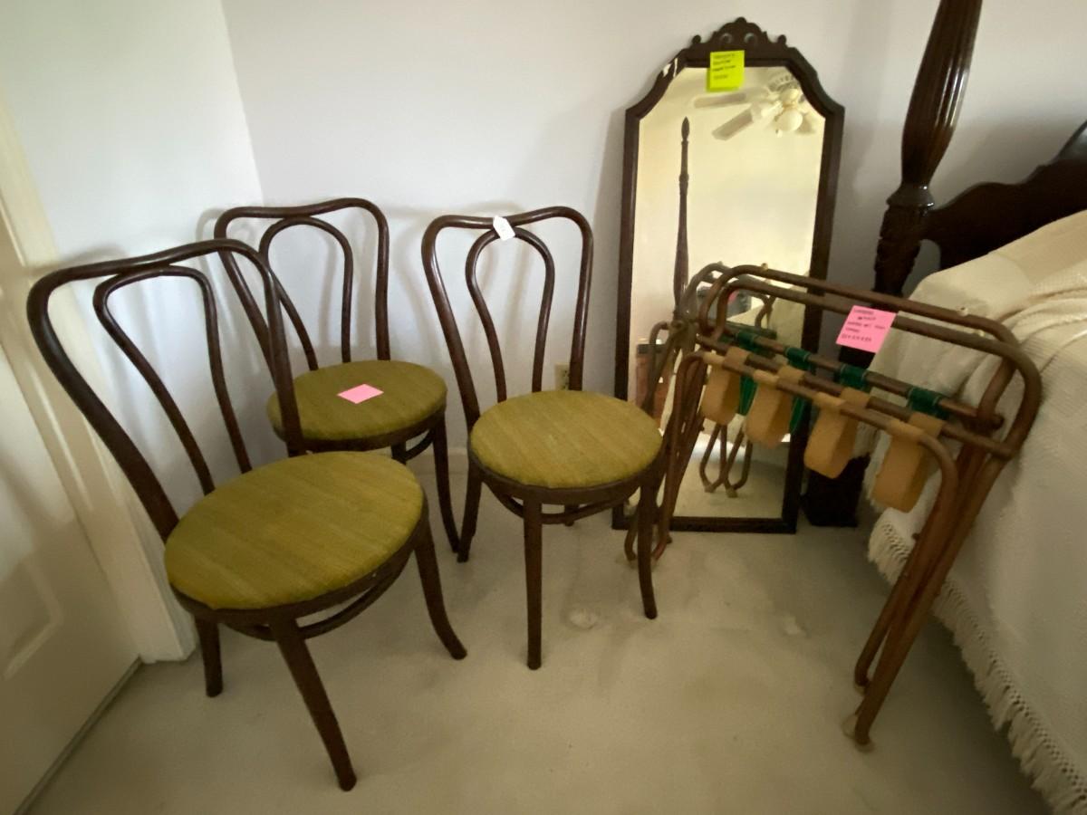 Wall Mirror and 4 Bentwood Chairs, 2 Luggage Racks, 1 Framed Art
