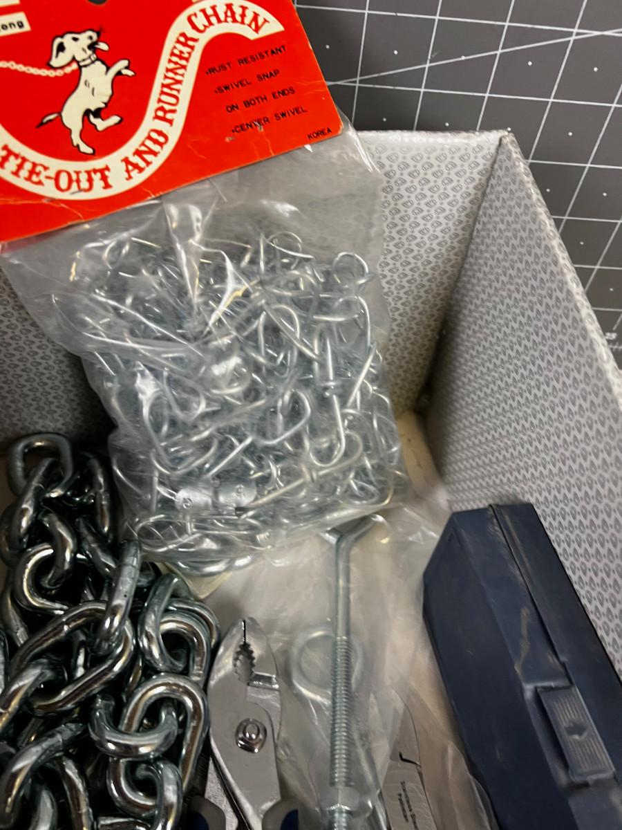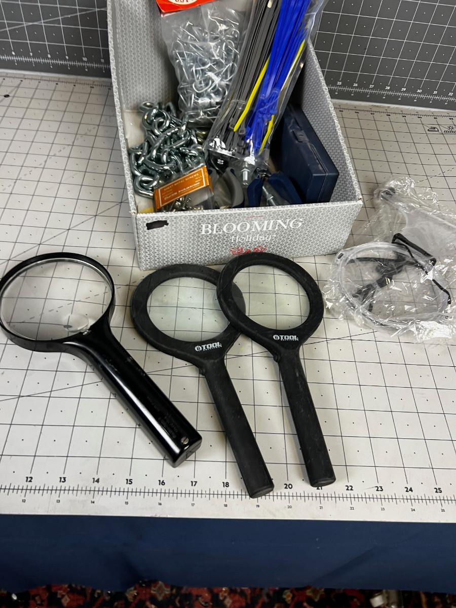 Misc. Garage Items: Chain, Magnifying Glass, Plyers