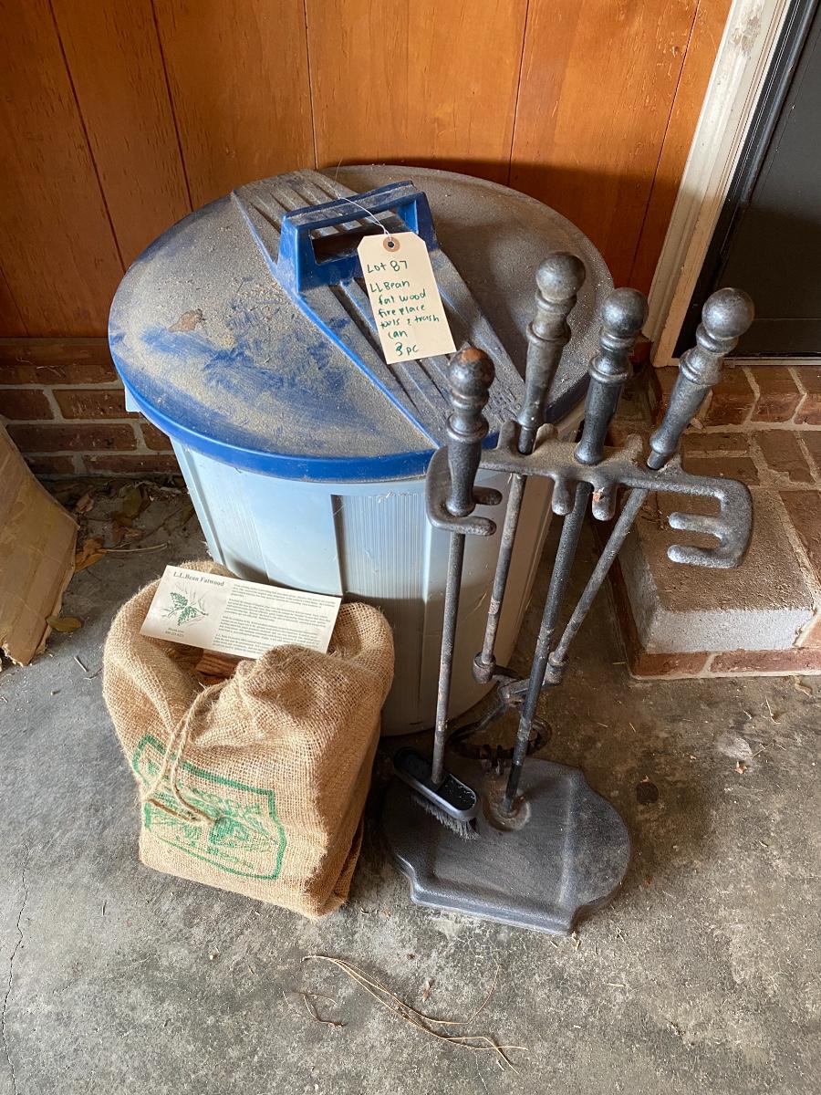 Plastic Trash Can, Fat Lighter, Fireplace Tools as Pictured
