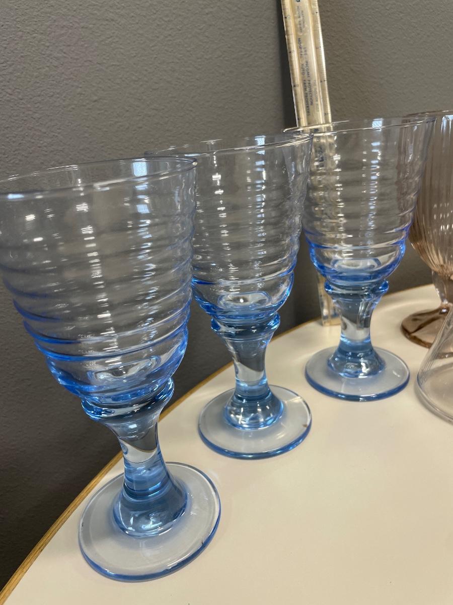 3 blue goblets