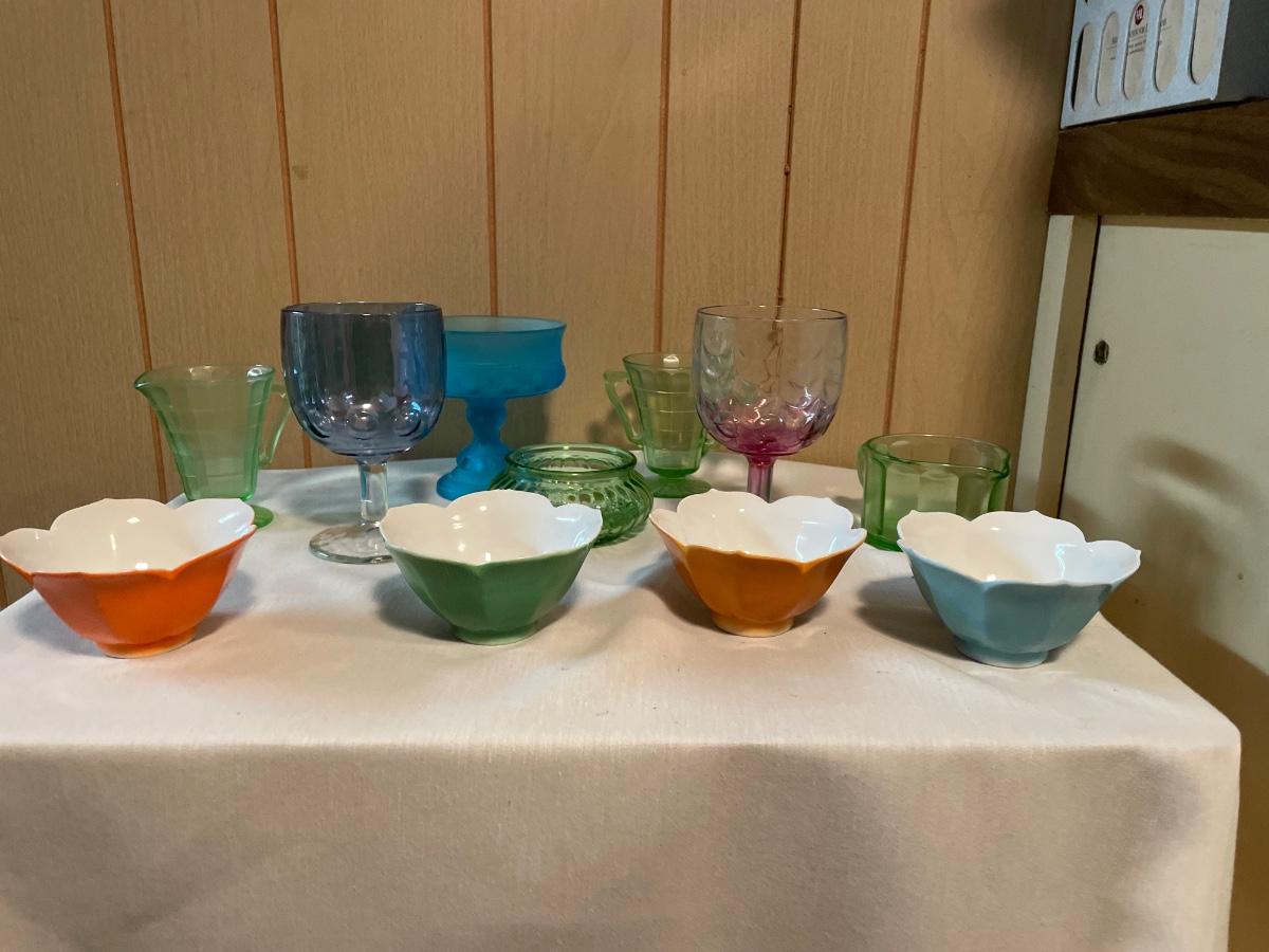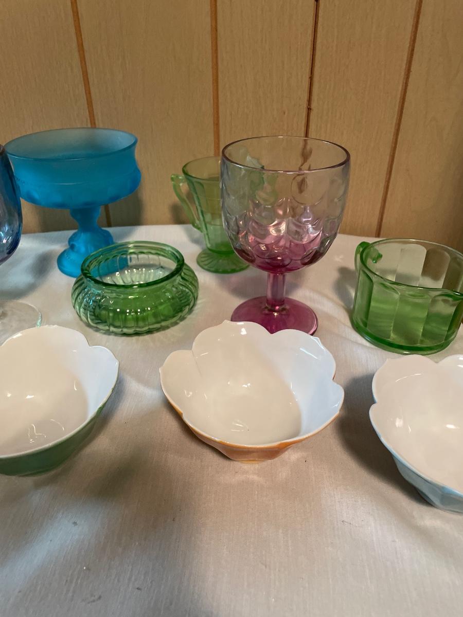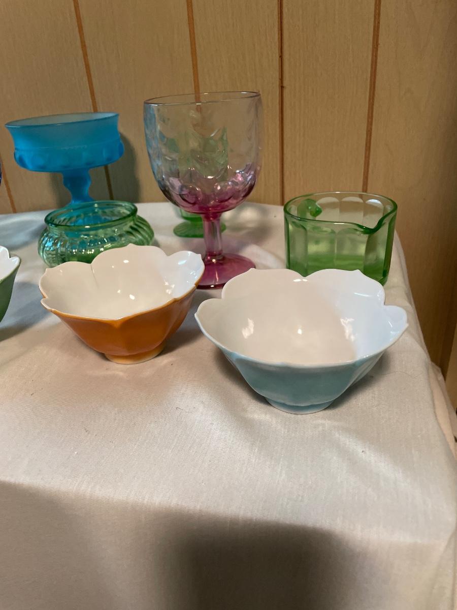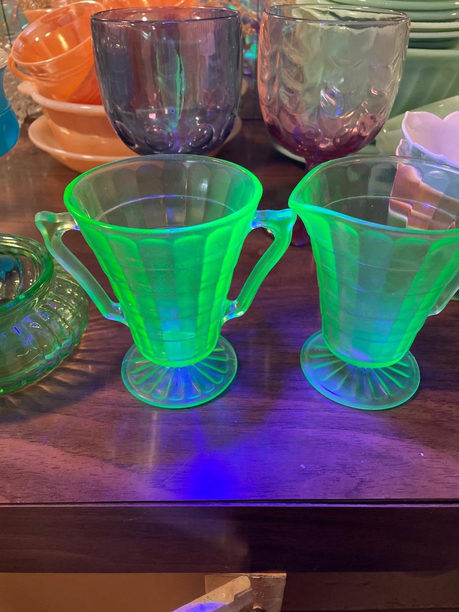 Misc glassware and ceramics the green glass is Uranium see pics under the black light.