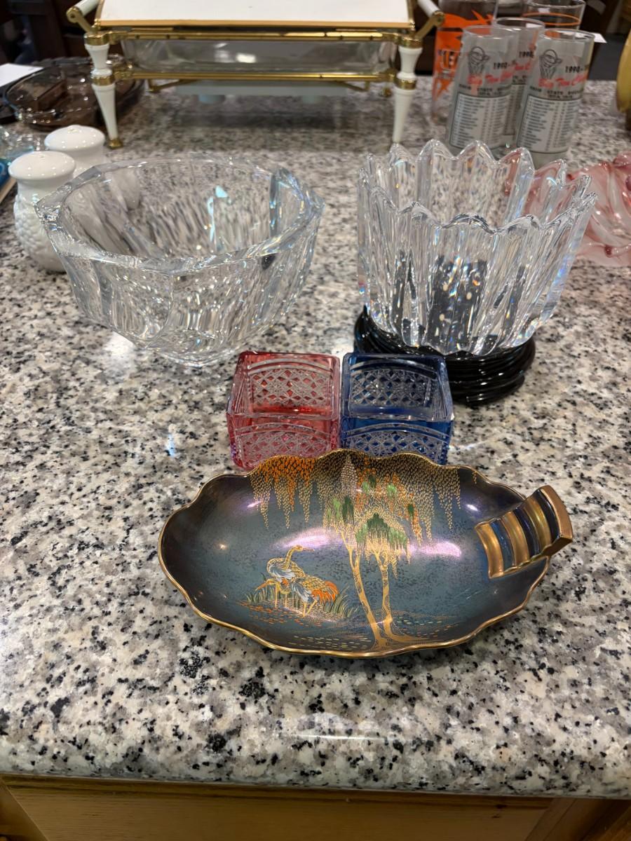 Misc glassware & hand painted dish