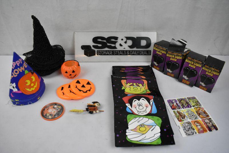 Misc Halloween Party stuff: Hats, Party Bags, Light Bulbs, Toys/Stickers