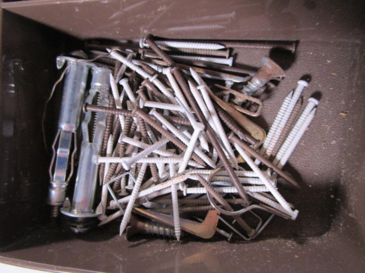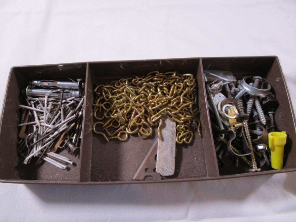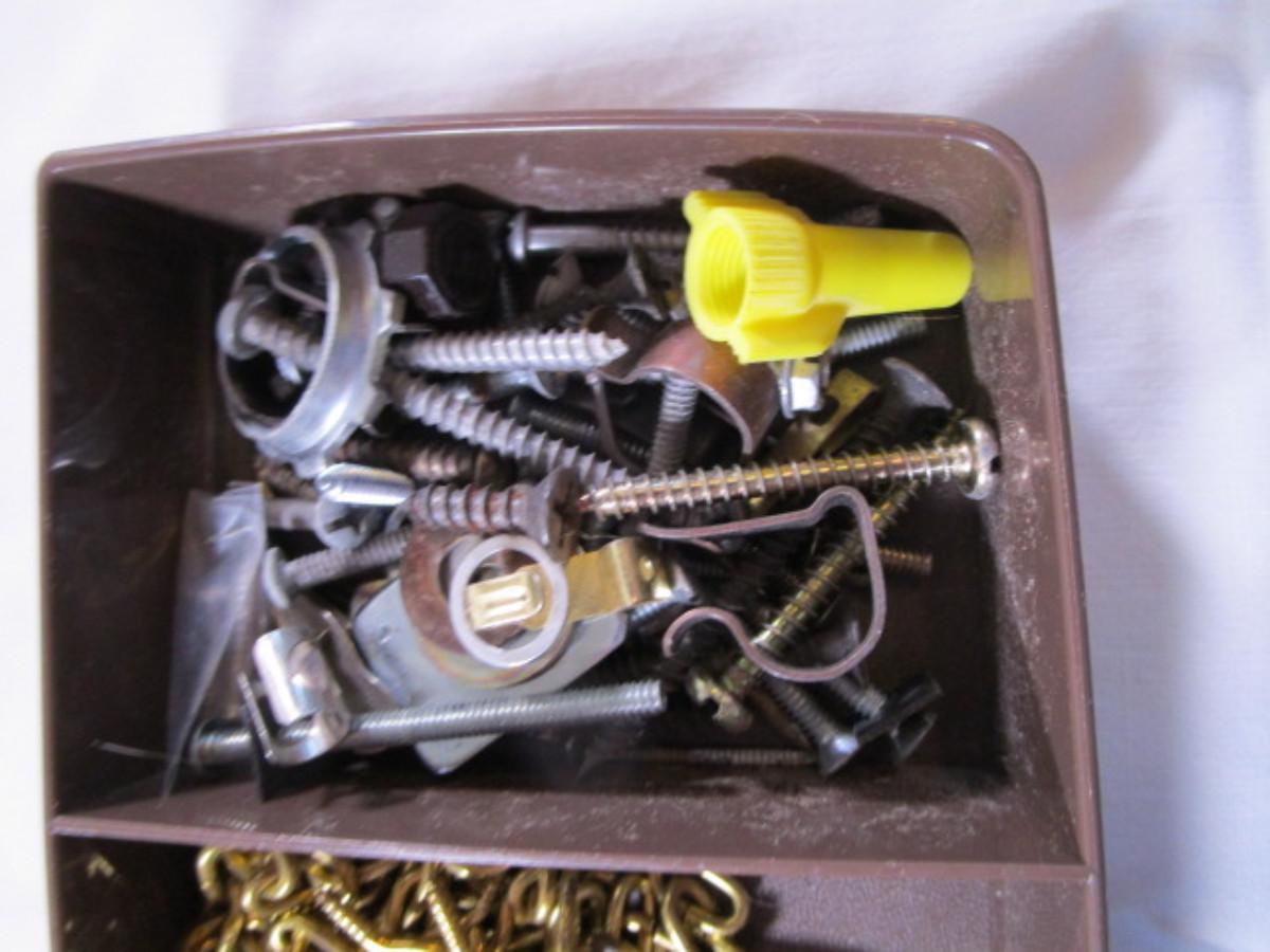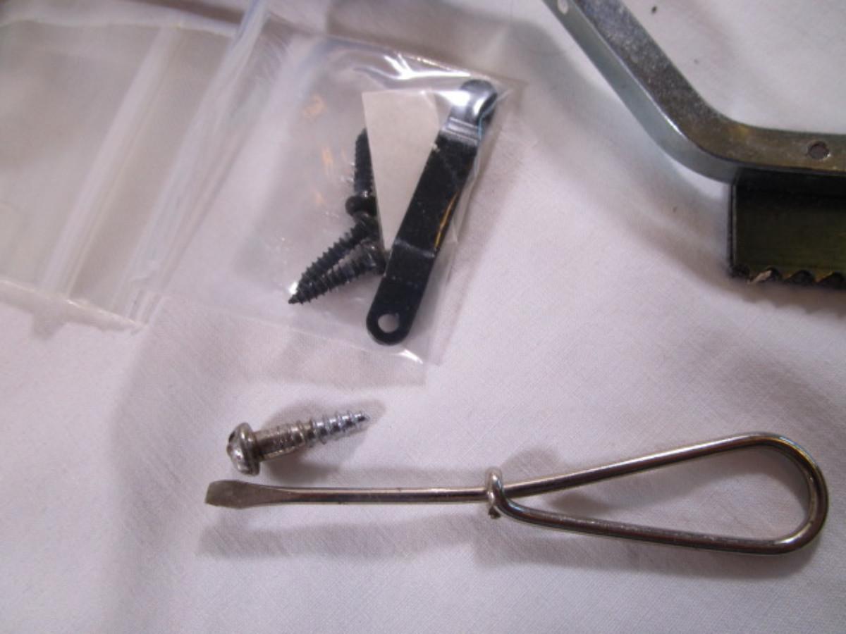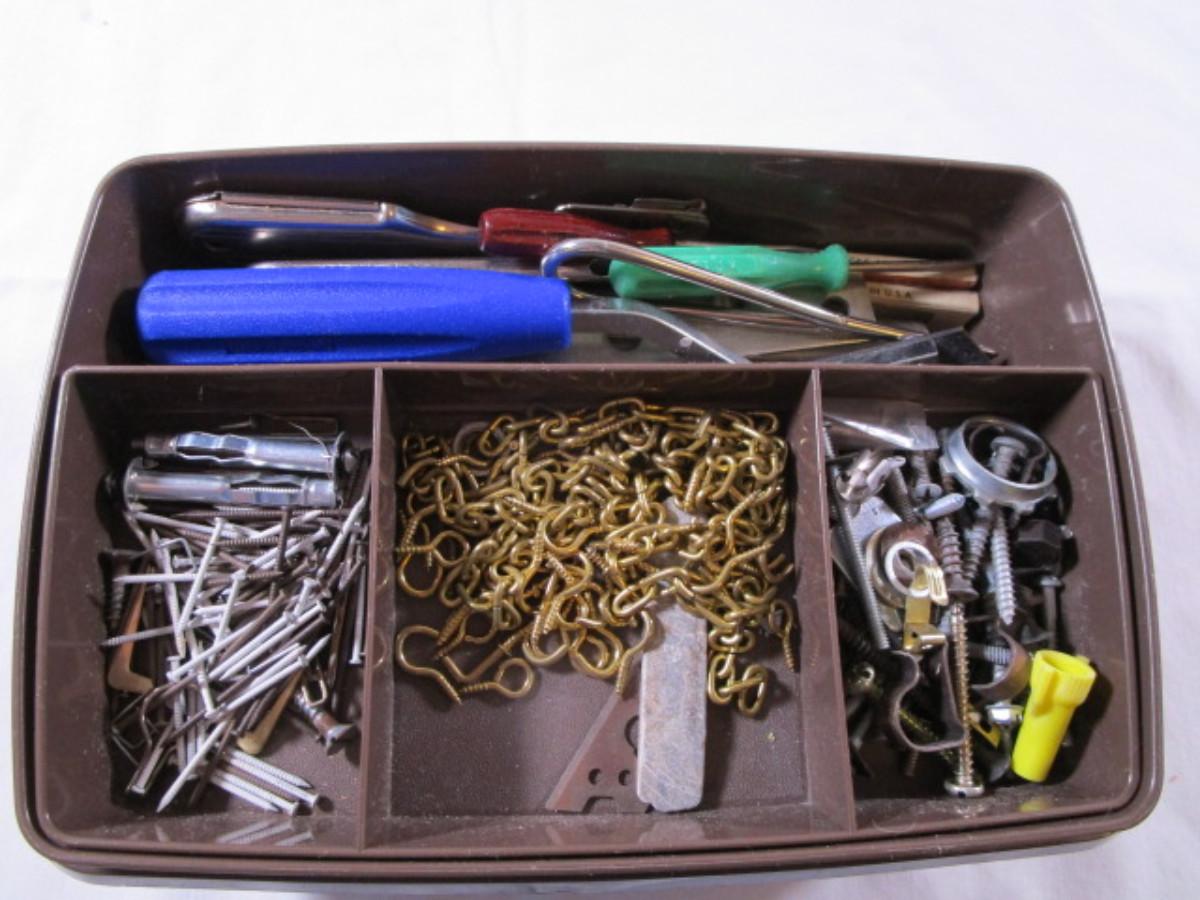 Razor blades, Exacto knives & blades, mini screwdriver, etc. in Tupperware container 9-3/8" x 6-1/2" x 2-1/2" tall, See pictures