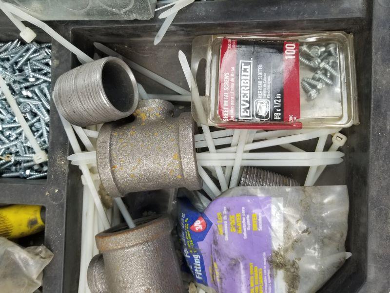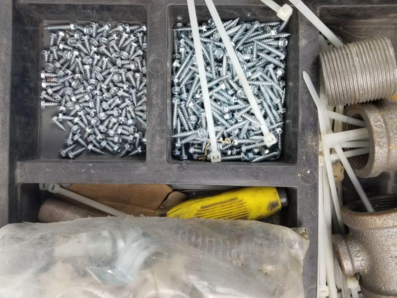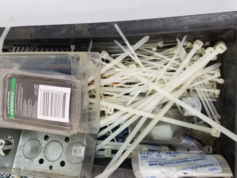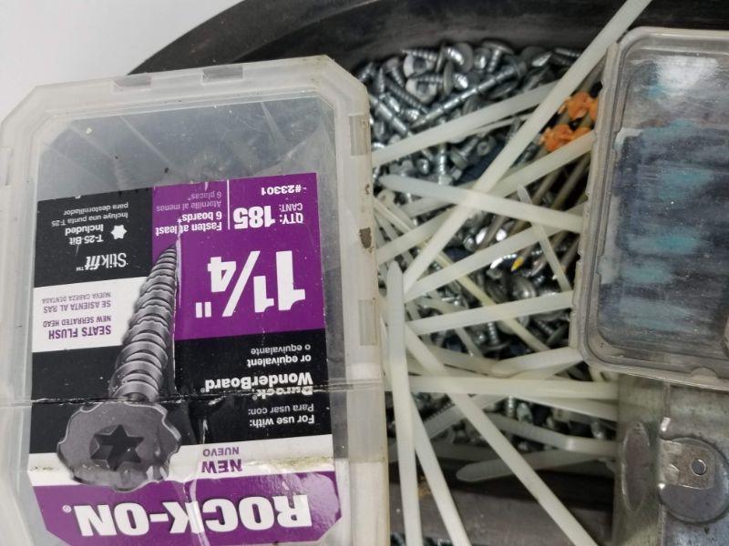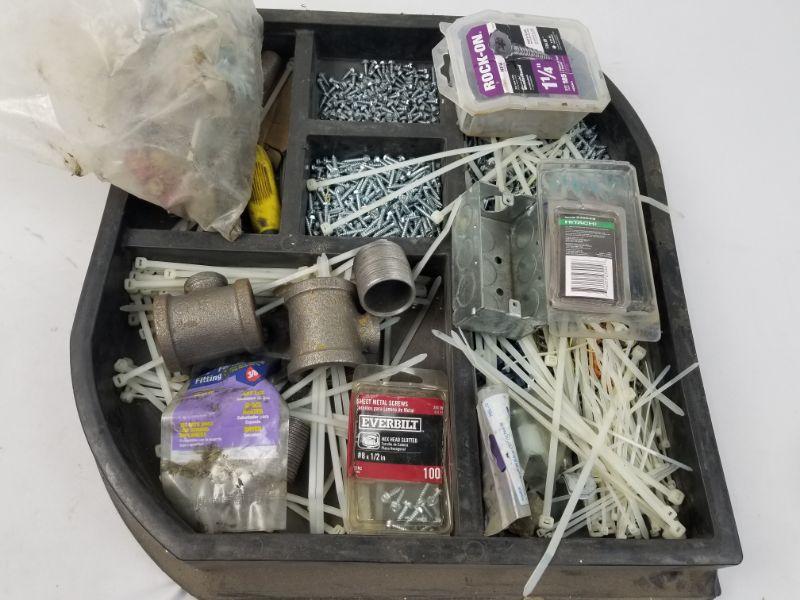 Misc. Hardware Lot: Screws, Zip Ties, Nails, etc in a Sorting Tray