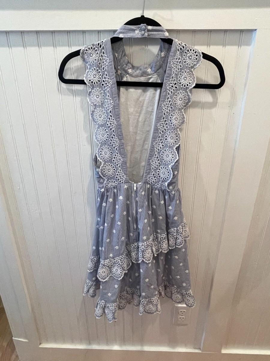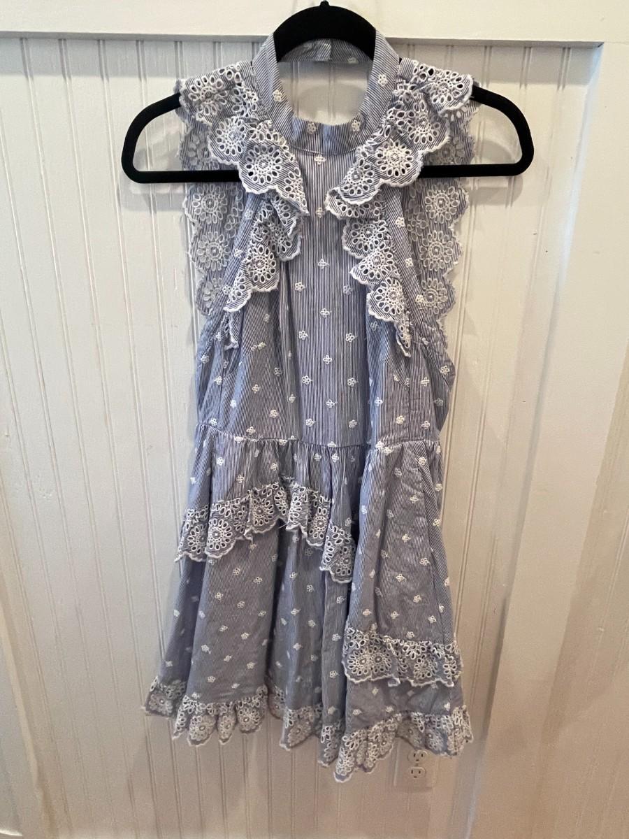 BLUE EYELET DRESS: SIZE 2 (FITS LIKE 0)