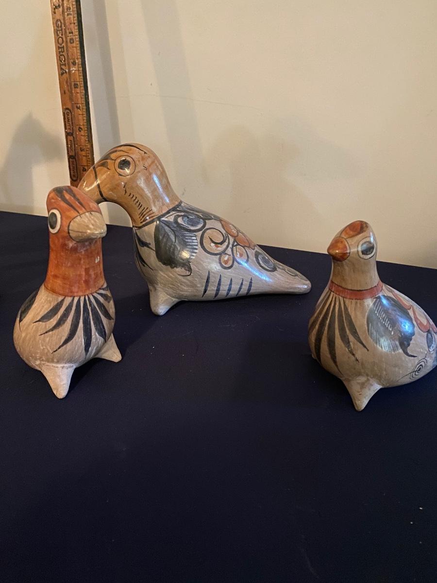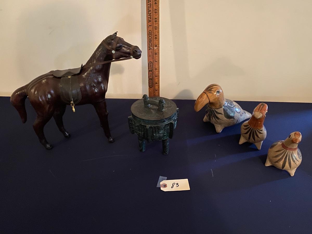 Misc Home Décor Includes Leather Horse, Oriental Lidded Ash Tray, 3 Pc Signed Bird Statues (Mexico)