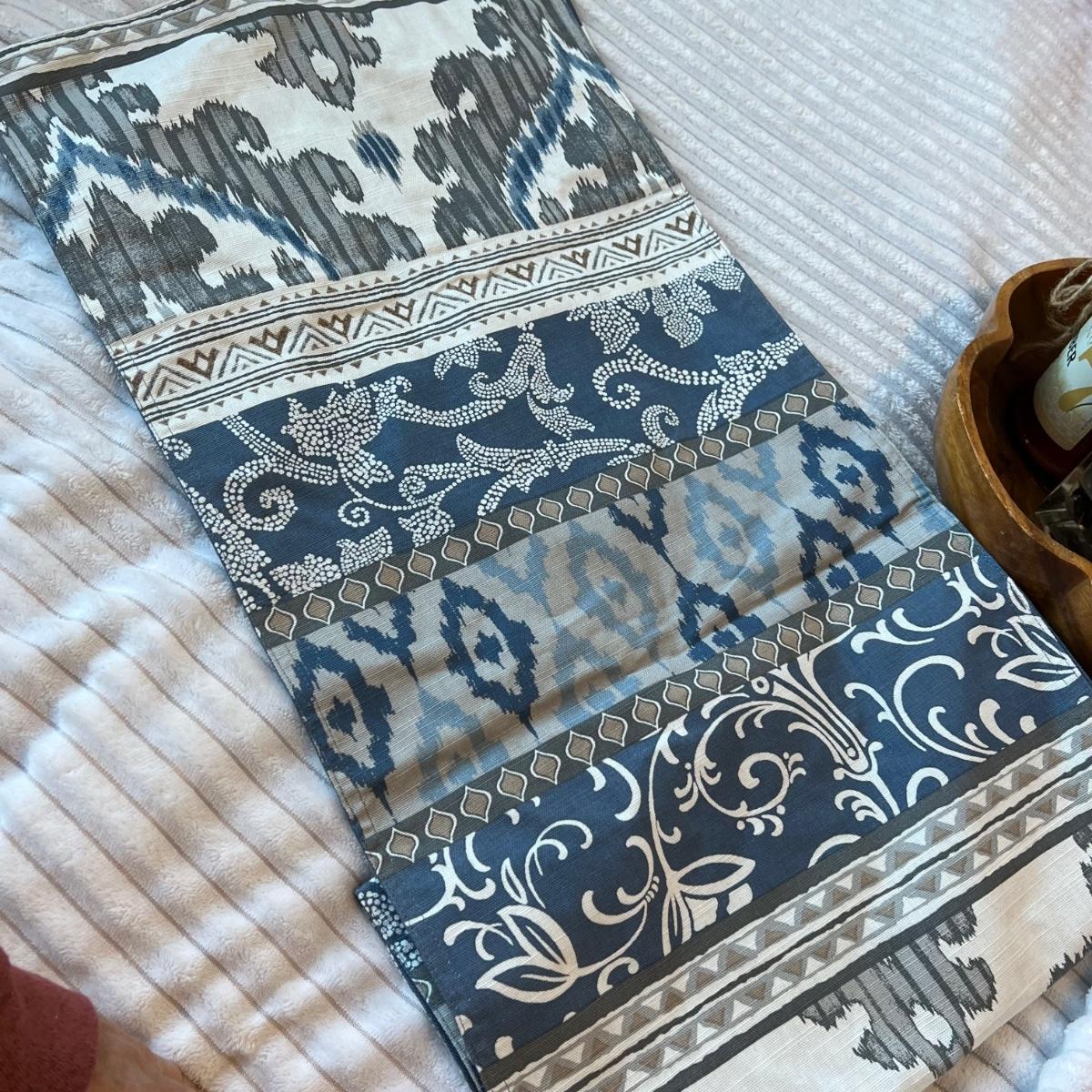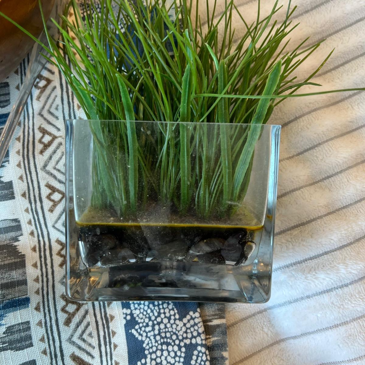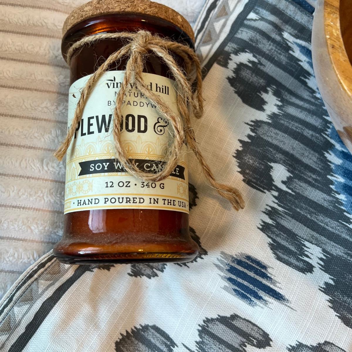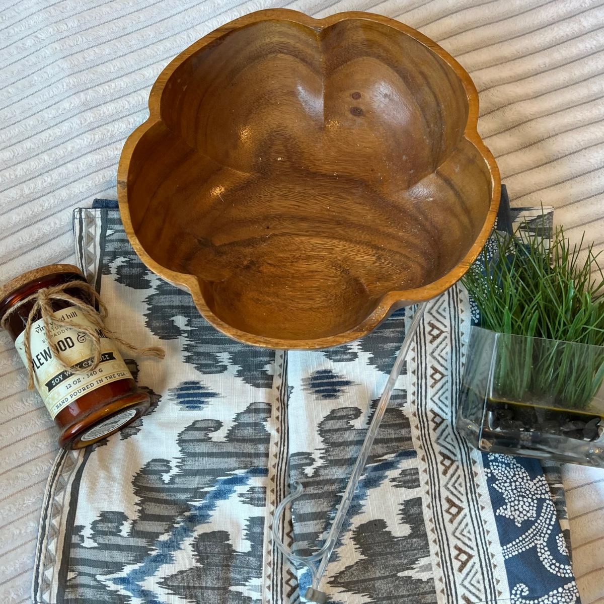 Miscellaneous home decor wooden bowl, wreath hanger, table runner, candle never been used. Fake grass in glass container.