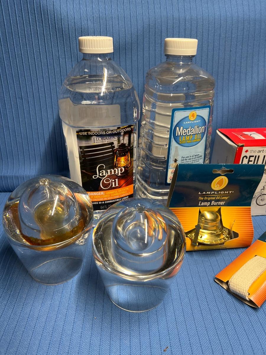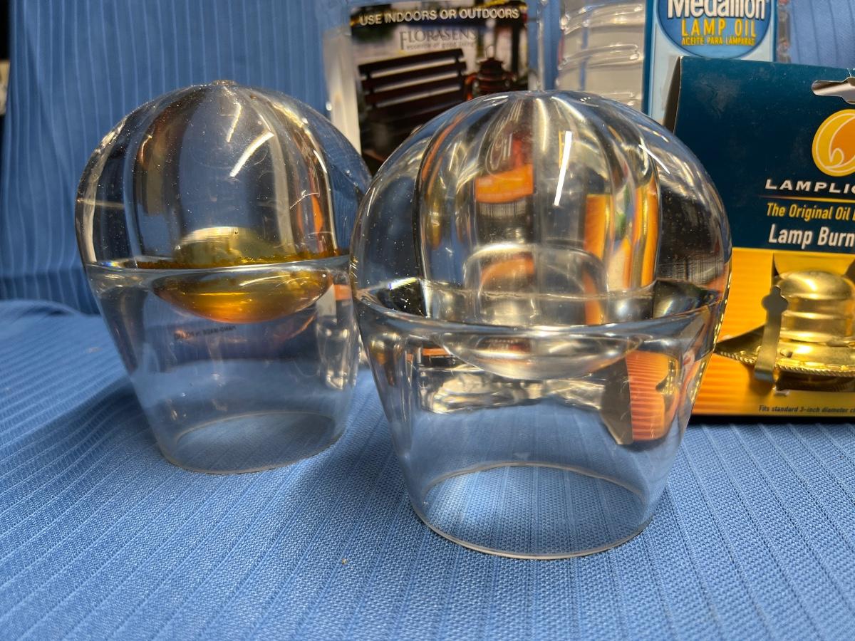 2 Polish Crystal Oil Lamps w. 2 Bottles Oil & Wics