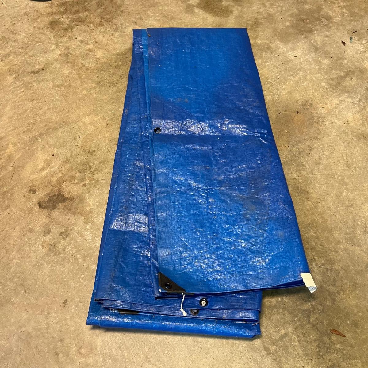 This lot includes a hand truck, a 32 gal wheeled garbage can, brooms, vinyl tarp and more. See pictures for more details.