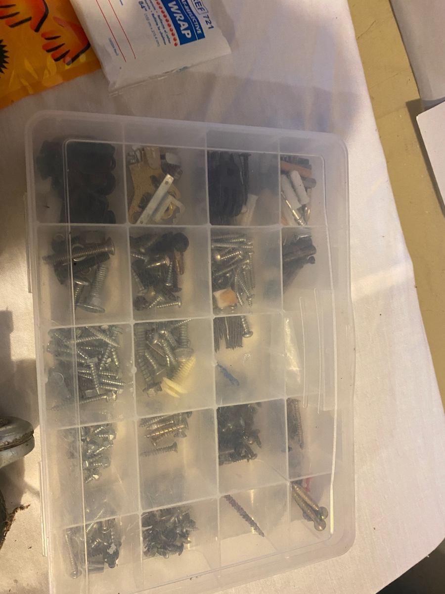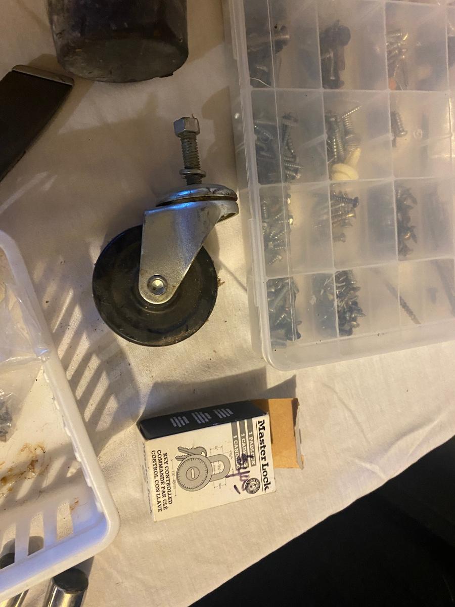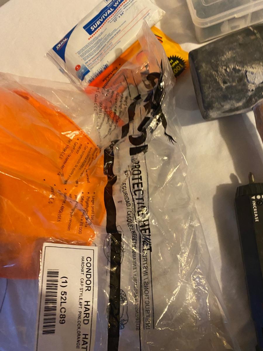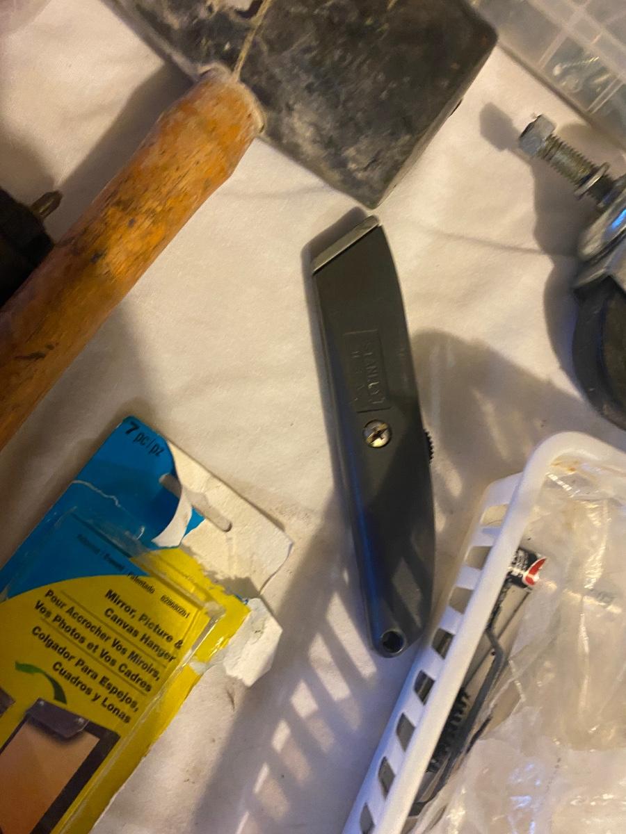 MISC HOUSEHOLD HARDWARE AND AN ORANGE HARD HAT TOO!