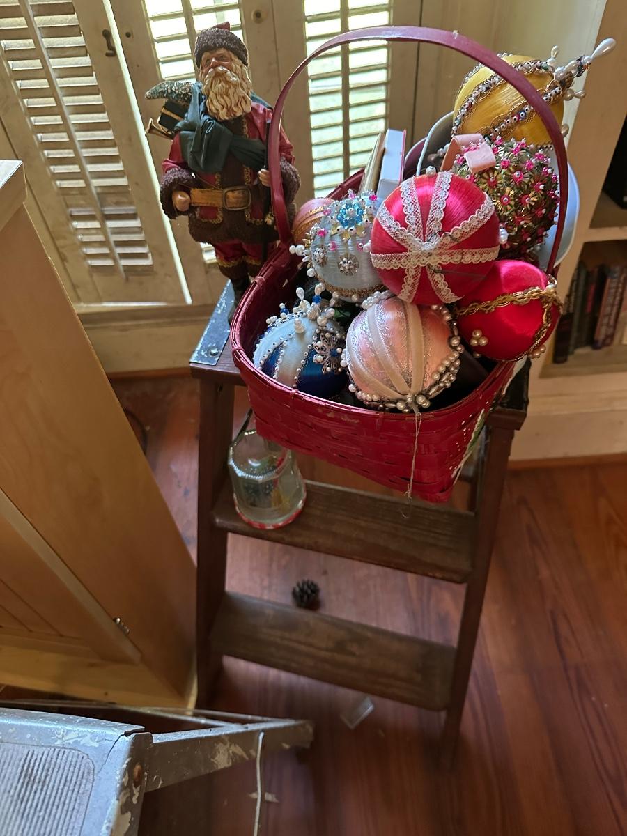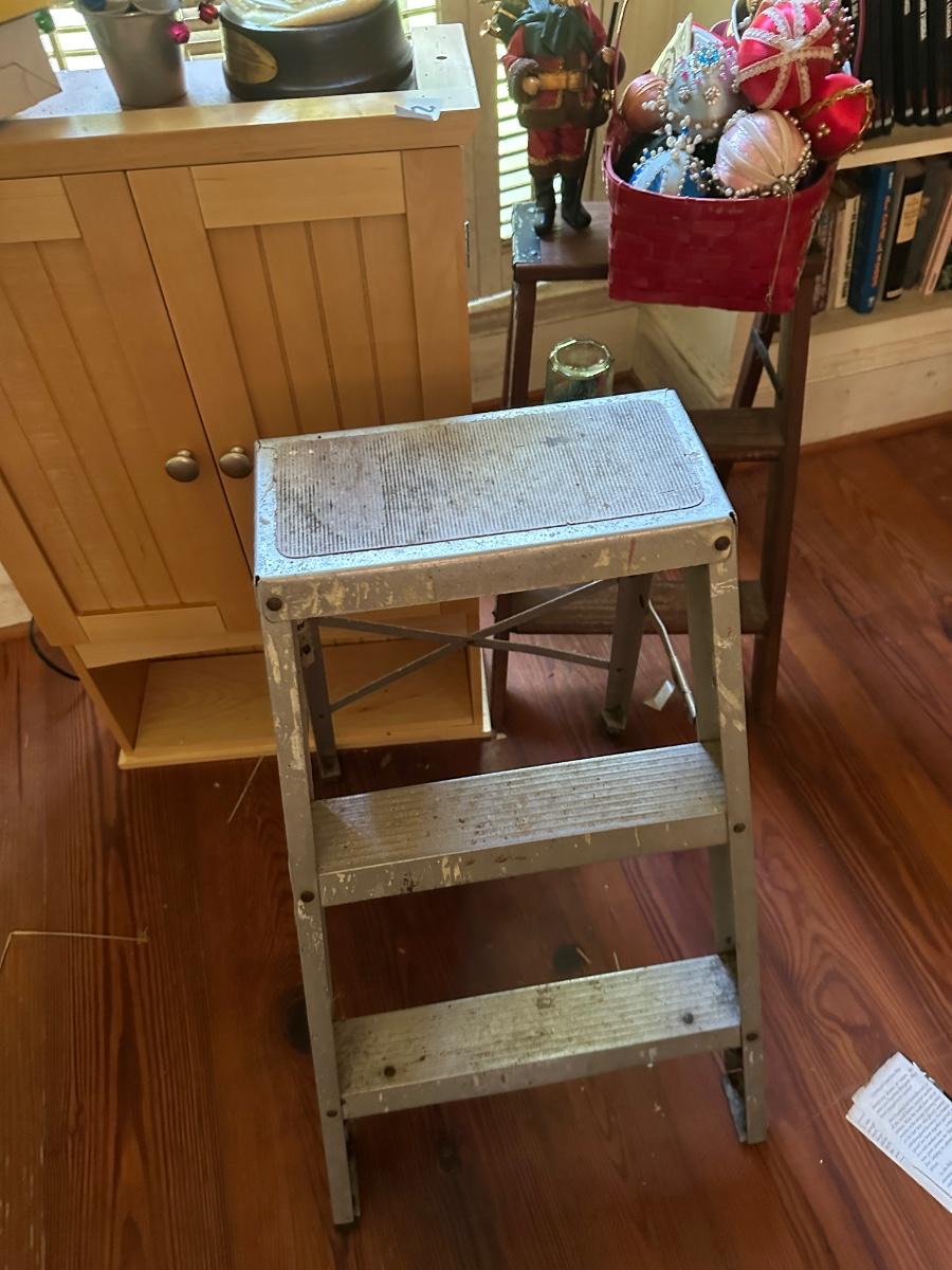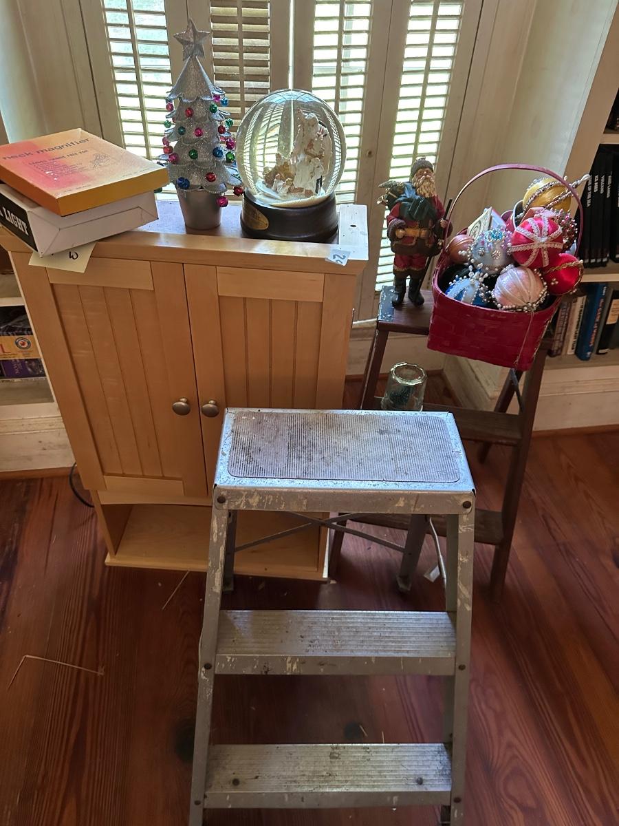 2 FOLDING STEP LADDERS, MISC CHRISTMAS, WALL SHELF AND MORE!