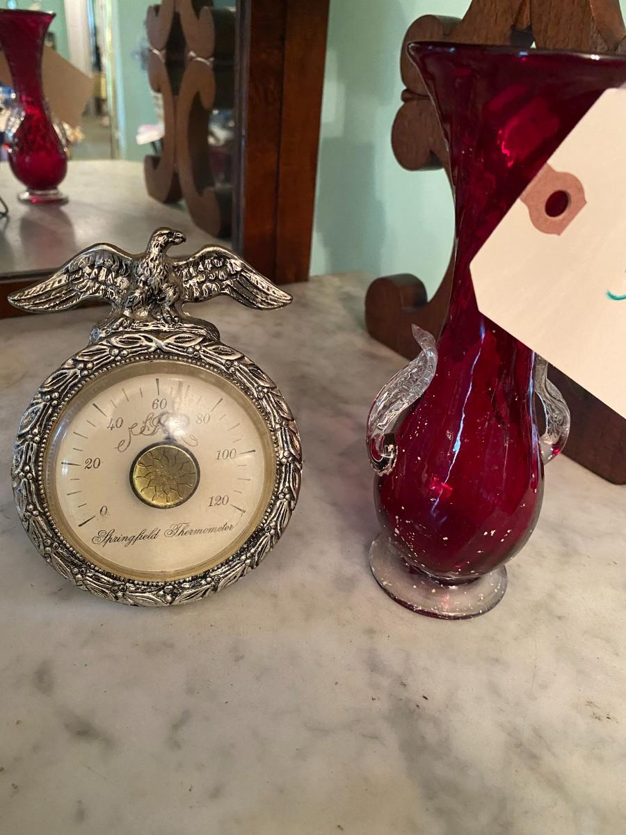 LOT 394 Neiman Marcus Soap, Duck Clip, Spring Field Thermometer, and Red Bud Vase
