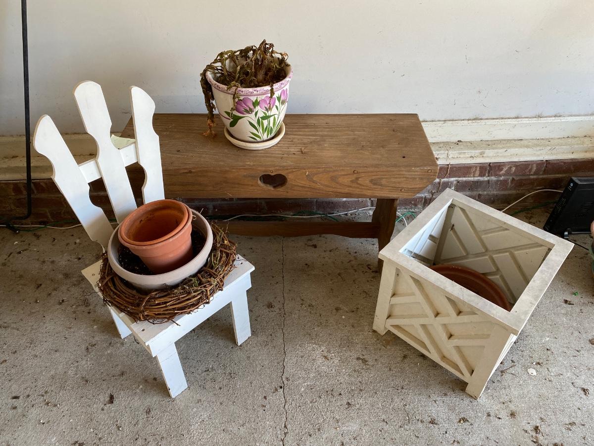 Bench, Planter, Chair and Planters As Pictured