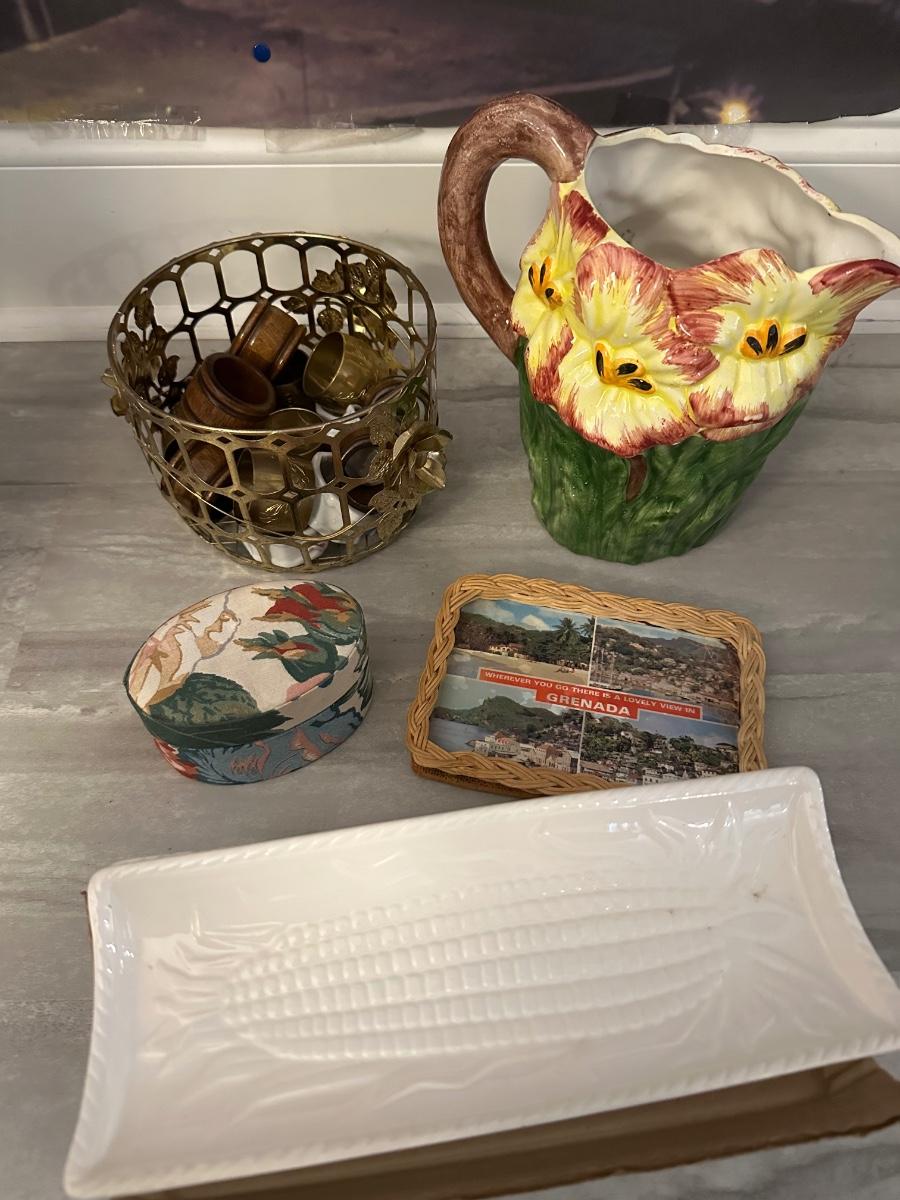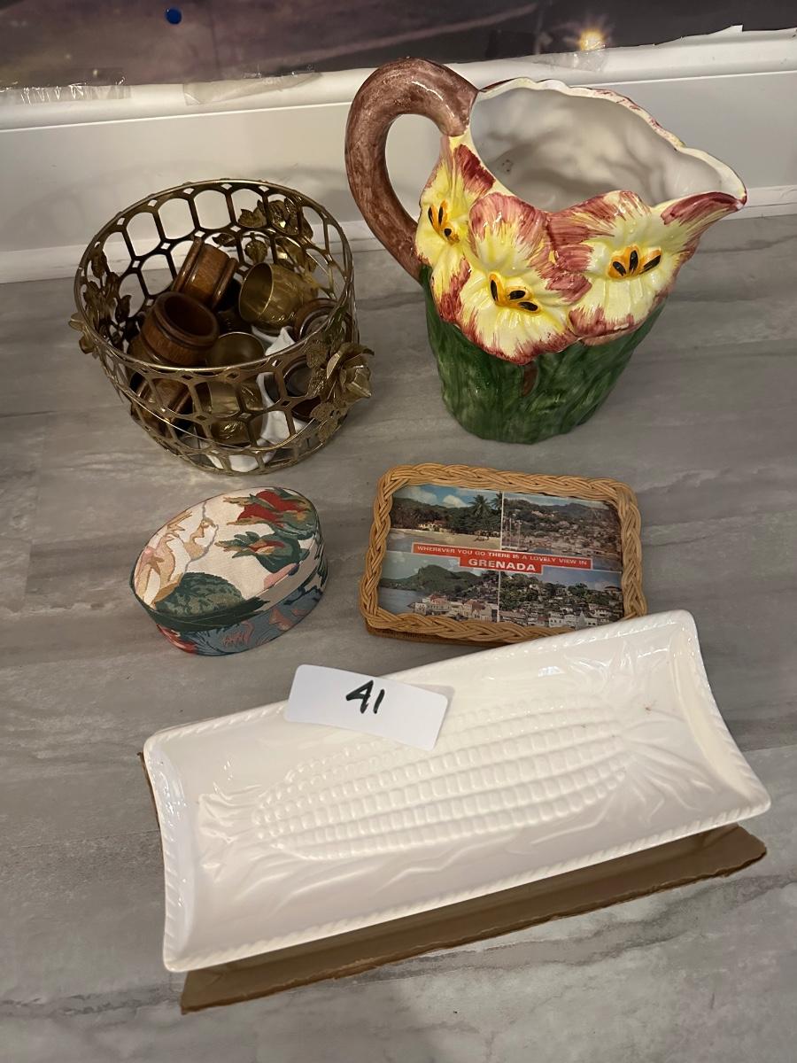 MISC. HOUSEHOLD LOT, INCLUDES CORN DISH SET, AS PICTURED