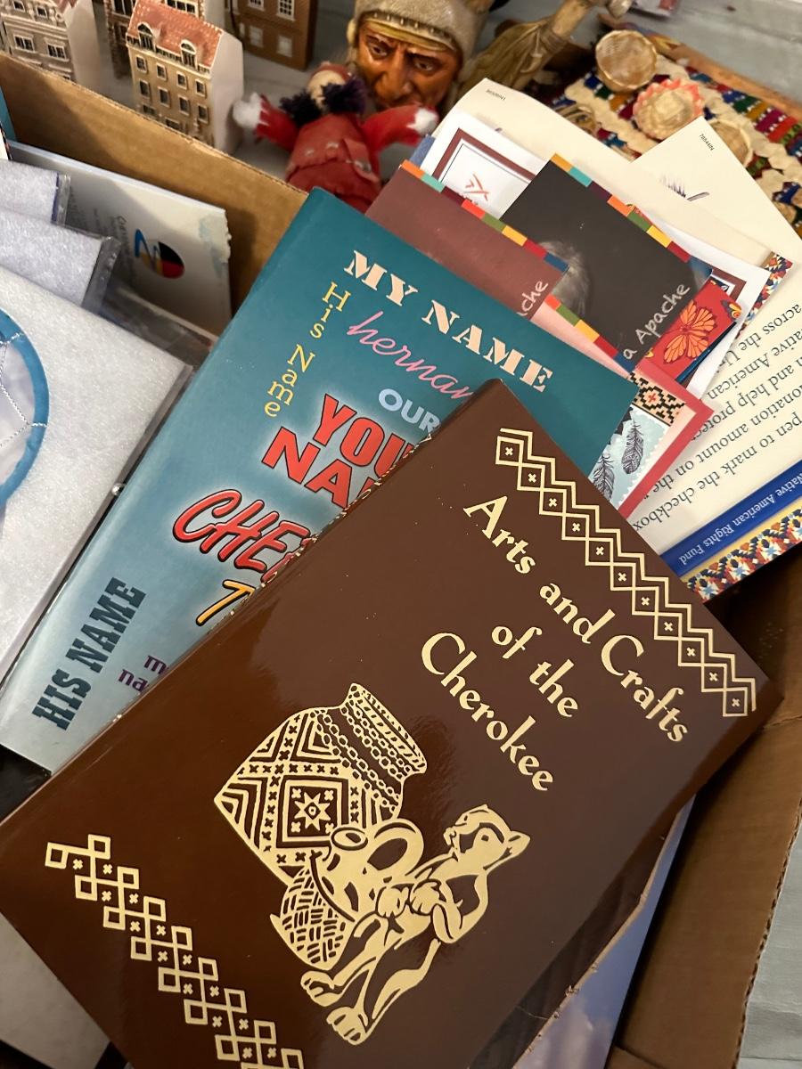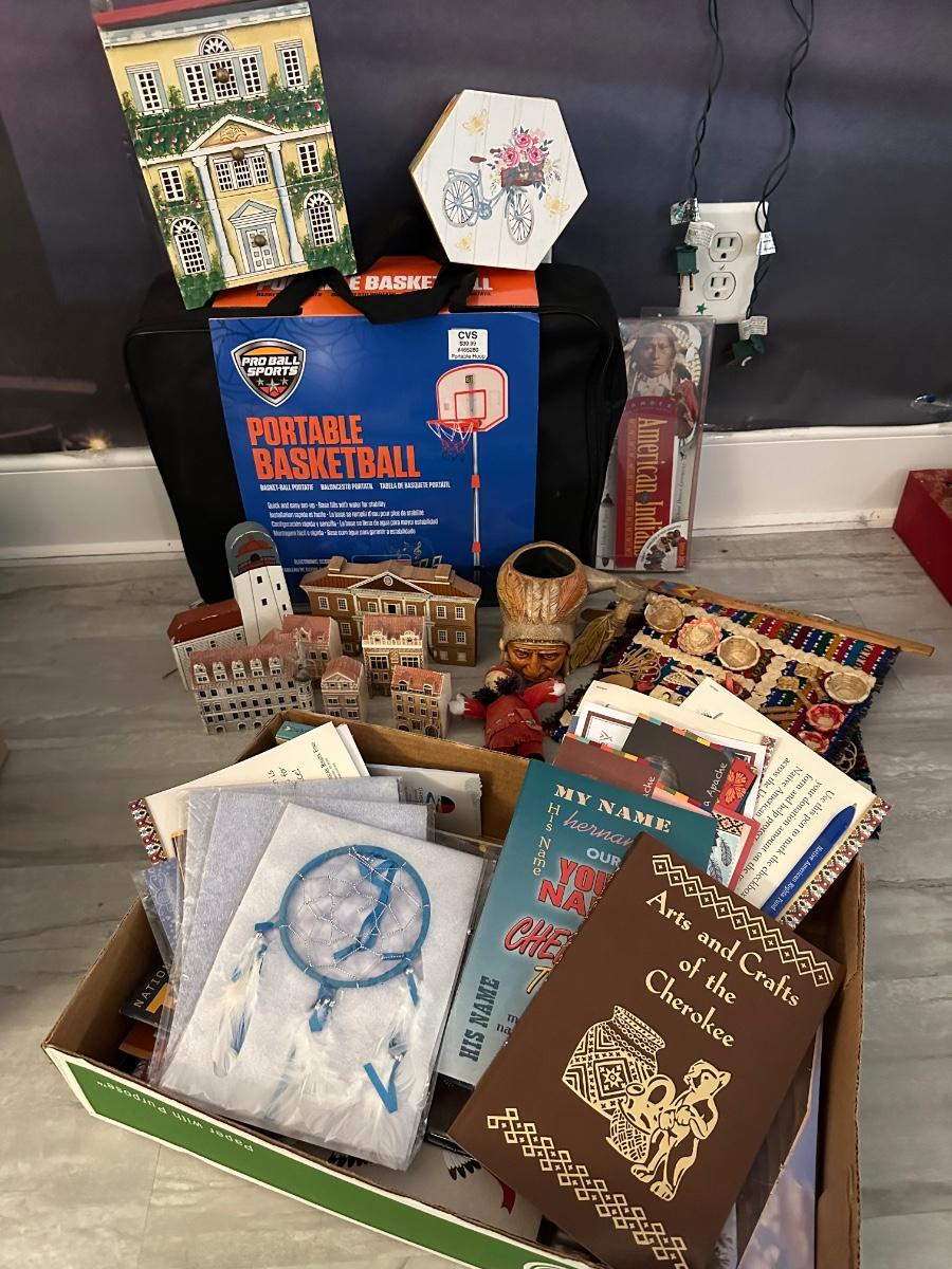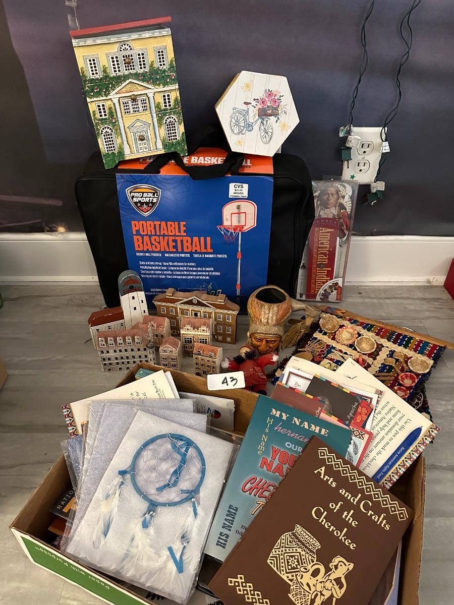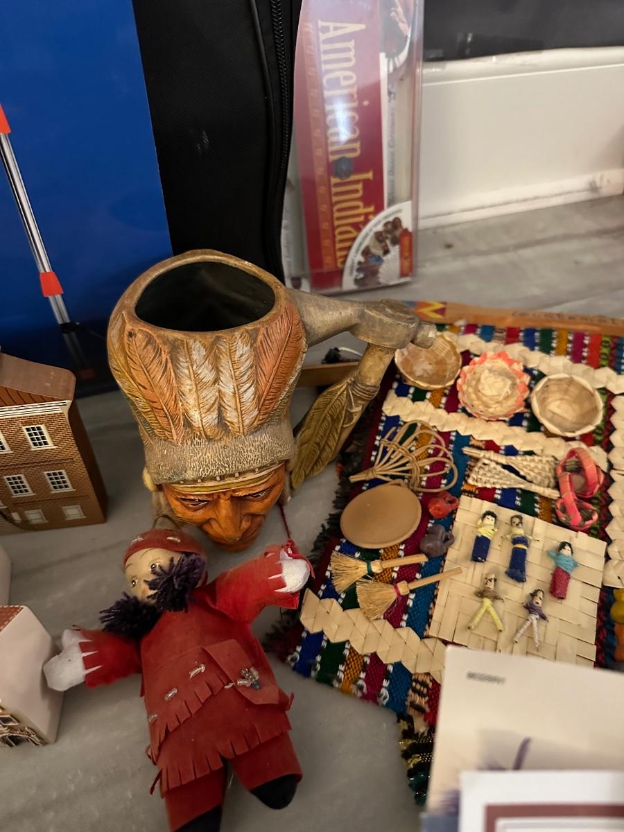 MISC. HOUSEHOLD LOT, INCLUDES COLLECTIBLE HOUSES, INDIAN BOOKS & COLLECTIBLES, AS PICTURED